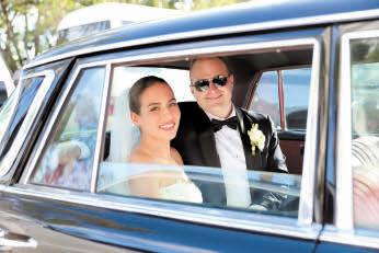 Los novios se trasladaron a la fiesta a bordo de un Mercedes clásico modelo 1965