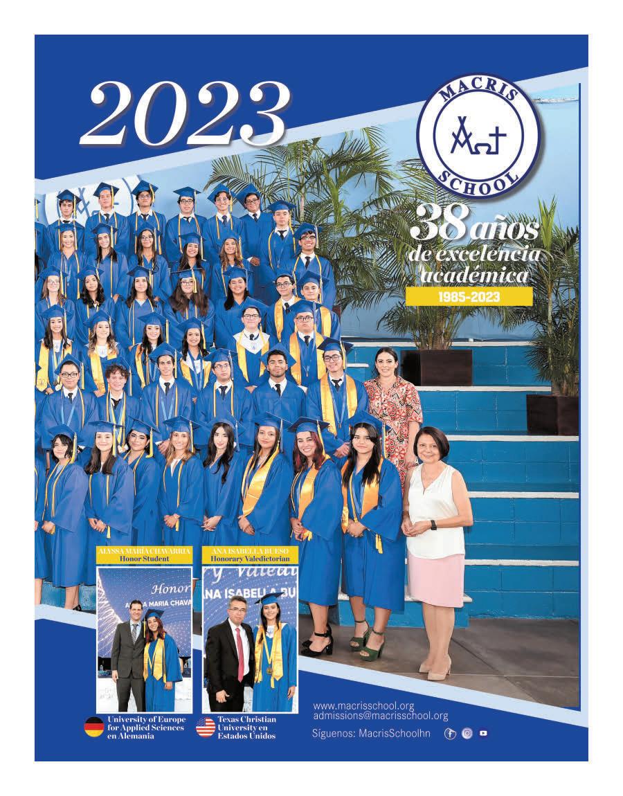 “High School fue una etapa que disfruté bastante ya que para mí no solo fue un lugar para crecer, sino también un lugar para divertirme y crear memorias con mis compañeros. Yo diría que además de dejarme muchas enseñanzas, estos últimos cuatro años han influido en mi desarrollo como persona dentro y fuera de la clase a través de experiencias únicas”. Isabela MendozaVivianna Isabel Cardona Luciana Erazo Jablonicky Alexia Marie Schacher José Pablo Rivera e Isabella Sofía Mendoza Lucía Mencía y Ana María Hode Luciano Coello Aspra, Camille Fiechter Salinas, Camila Batres y Luca Antonio Salinas