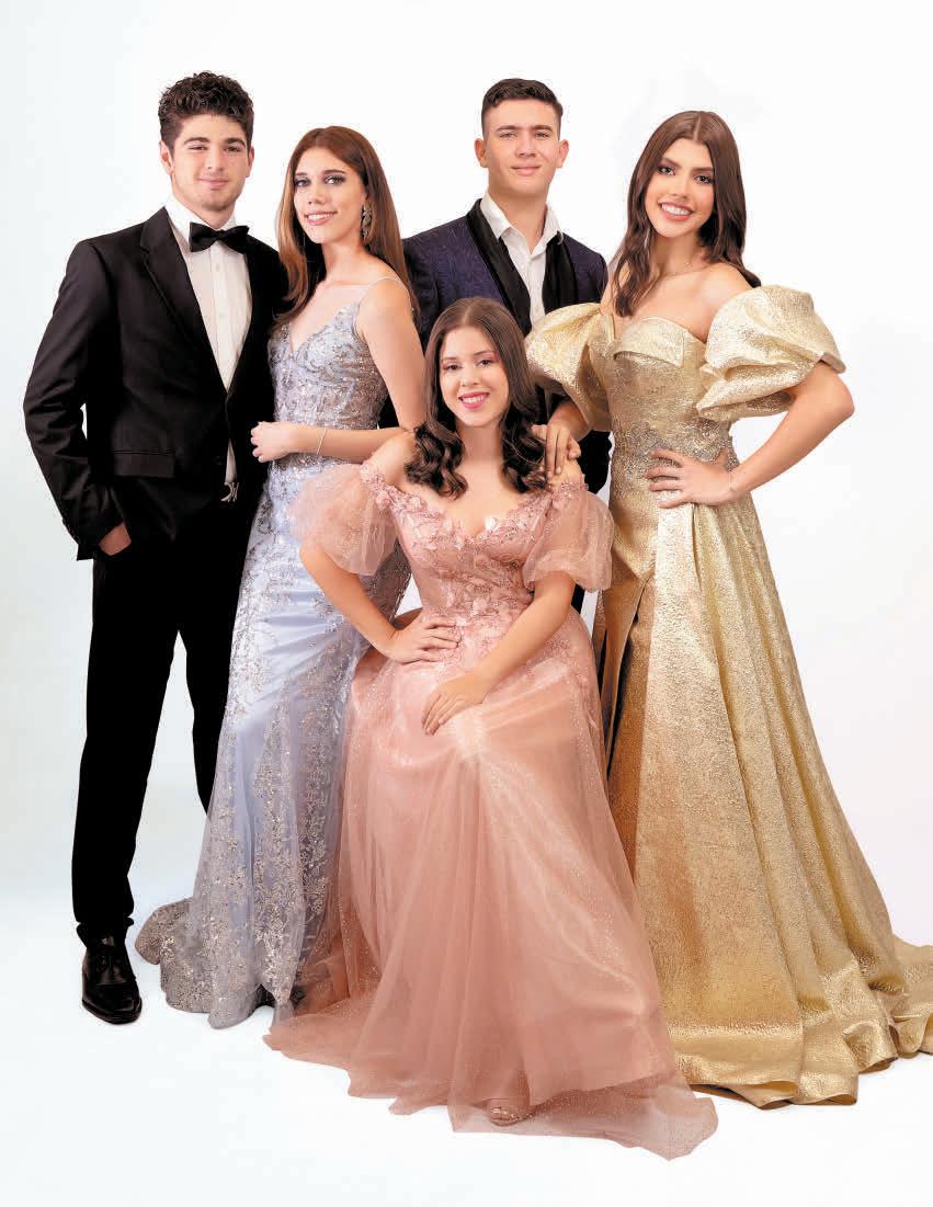 The time of my life. Nuevos sueños se dibujan en el horizonte y ellos están listos para cumplirlos. En esta página, de izquierda a derecha: Dominique Martel, Stefan Lagunes, Valencia Meza, Bernardo Castellanos y Michelle Wehmeyer. Enla páginaderecha: Sebastián U. Álvarez, Lucía Cruz, Isabella Azcona, Jorge Andonie y Andrea Díaz