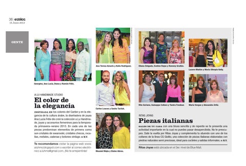 INSPIRADA EN los colores del Caribe y en la elegancia de la cultura árabe, la diseñadora de joyas Ana Lucía Félix dio creó la colección a.Lu Handmade, joyas y accesorios femeninos para la temporada primavera–verano 2013. En cada una de las piezas predominan elementos de primera como son cristales de swarovski, cristales checos, rocallas, metales, cadenas y botones vintage. n N.V.