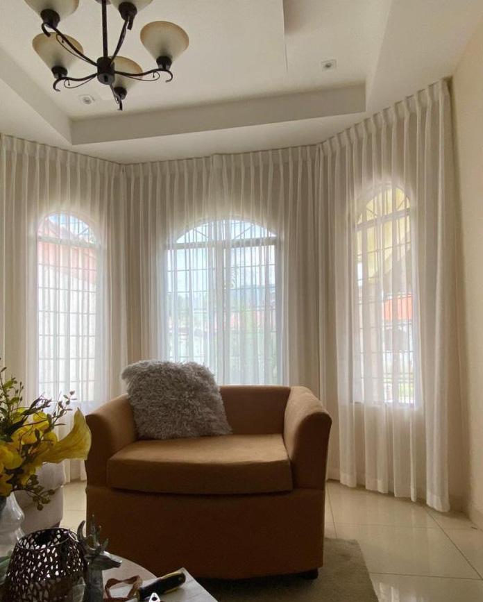 Este modelo de cortina lo podemos fabricar con las telas de su predilección, ideales para ventanas curvas ya que su riel se adapta a la forma de su ventana.