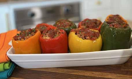* Place the peppers in the casserole dish and spoon the meat and vegetable mixture into each of the prepared peppers