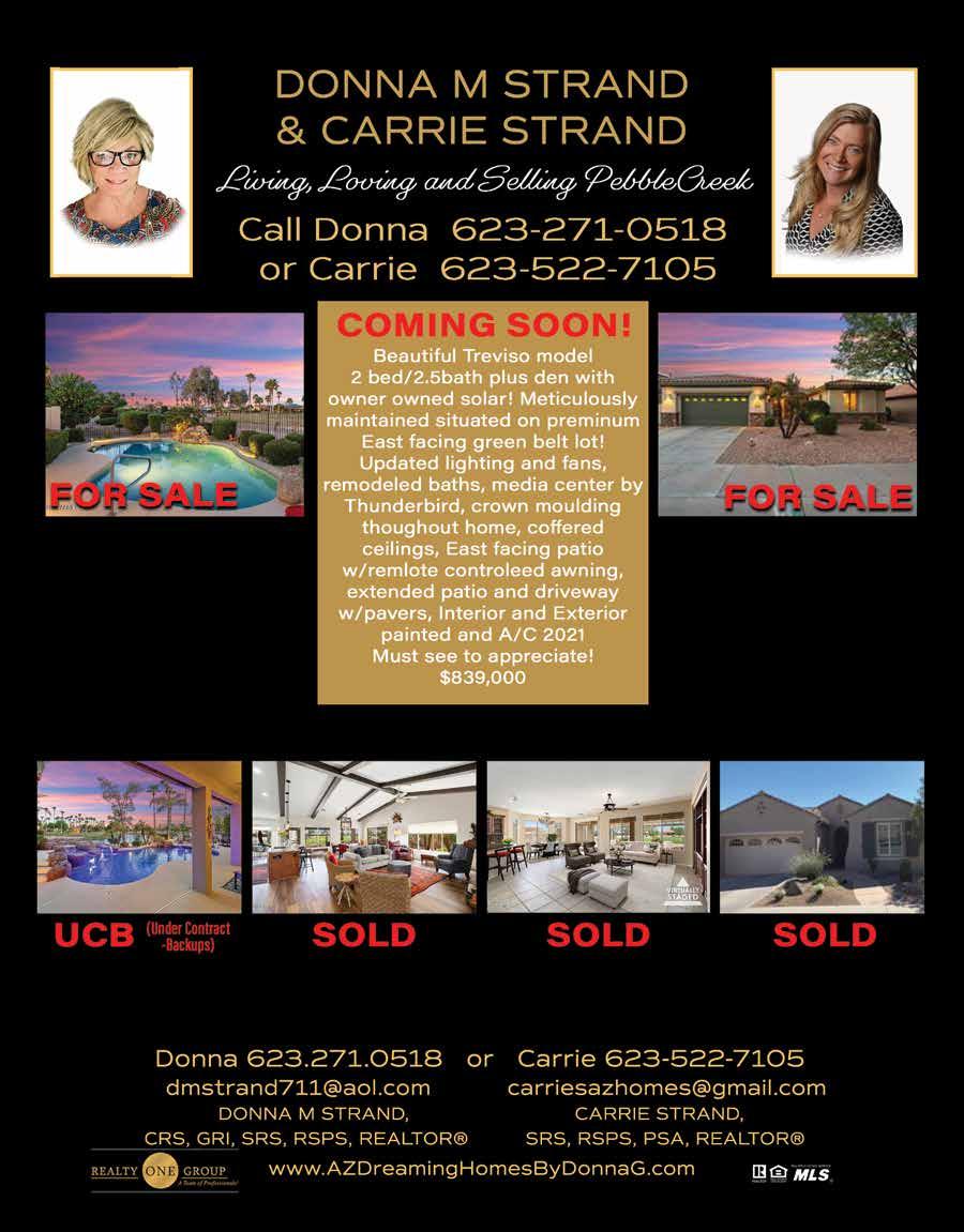 623.925.5427 623.247.9252 623.931.9477 602.438.8485 602.960.2331 602.671.2999 623.738.6064 480.698.4828 623.487.3147 623.298.4200 310.702.1055 480.316.0016 623.853.5878 480.797.1111 623.271.0518 480.212.2219 623.377.1329 310.291.1590 623.935.3411 “Experience a Higher Standard of Service” PEBBLECREEK RESIDENT REALTORS® SUE BURKHARDT 623.853.5878 | BurkhardtTeam@gmail.com JESSICA BURKHARDT 623.695.7776 | jbb.azrealty@gmail.com Dominick Santalucia Branch Manager - Team Leader NMLS ID 204938 (602) 524-2421 (623) 321-5816 dominicks@fairwaymc.com www.SantaluciaTeam.com Download the FAIRWAYNOW app to apply now FIMC NMLS #2289 AZ License #BK-0904162 20359 N. 59th Ave., Suite 100 | Glendale, AZ 85308 VIEW ALL PEBBLECREEK LISTINGS AT www.BURKHARDTTEAM.com TODAY!