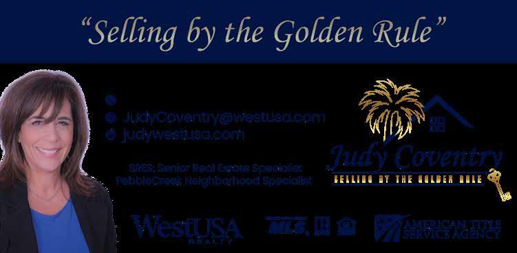 623.925.5427 623.247.9252 623.931.9477 602.438.8485 602.960.2331 623.738.6064 480.698.4828 623.487.3147 623.298.4200 310.702.1055 480.316.0016 623.853.5878 480.797.1111 623.271.0518 480.212.2219 623.377.1329 310.291.1590 “Experience a Higher Standard of Service” PEBBLECREEK RESIDENT REALTORS® SUE BURKHARDT 623.853.5878 | BurkhardtTeam@gmail.com JESSICA BURKHARDT 623.695.7776 | jbb.azrealty@gmail.com Dominick Santalucia Branch Manager - Team Leader NMLS ID 204938 (602) 524-2421 (623) 321-5816 dominicks@fairwaymc.com www.SantaluciaTeam.com Download the FAIRWAYNOW app to apply now FIMC NMLS #2289 AZ License #BK-0904162 20359 N. 59th Ave., Suite 100 | Glendale, AZ 85308 VIEW ALL PEBBLECREEK LISTINGS AT www.BURKHARDTTEAM.com TODAY! 2597 N. 164TH DRIVE 3 Bed + Office, 3 Bath & Oasis Pool FEATURED LISTING LUXURIOUS LIVING AT ITS FINEST! Immaculate ‘Montara’ Estate Property. Located on the 10W Green & 11W Tees. Gorgeous Lake & Mountain Views. Too Many Upgrades to List -- Must See! $991,400