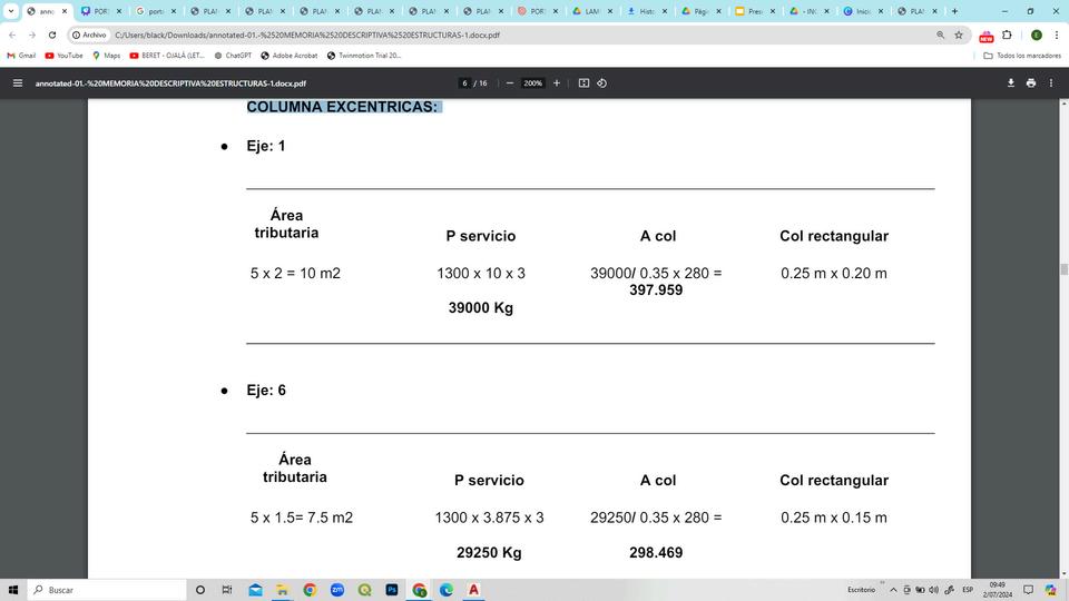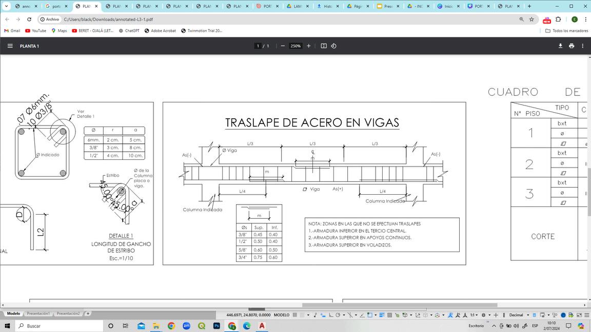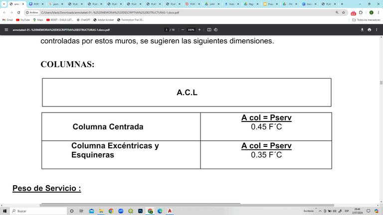 De acuerdo a la norma E 0.20 en la tabla 1 de cargas vivas mínimas repartidas, observamos que para aulas son 250 Kgf/m2. Es por eso que consideramos la losa aligerada de 0.25 m