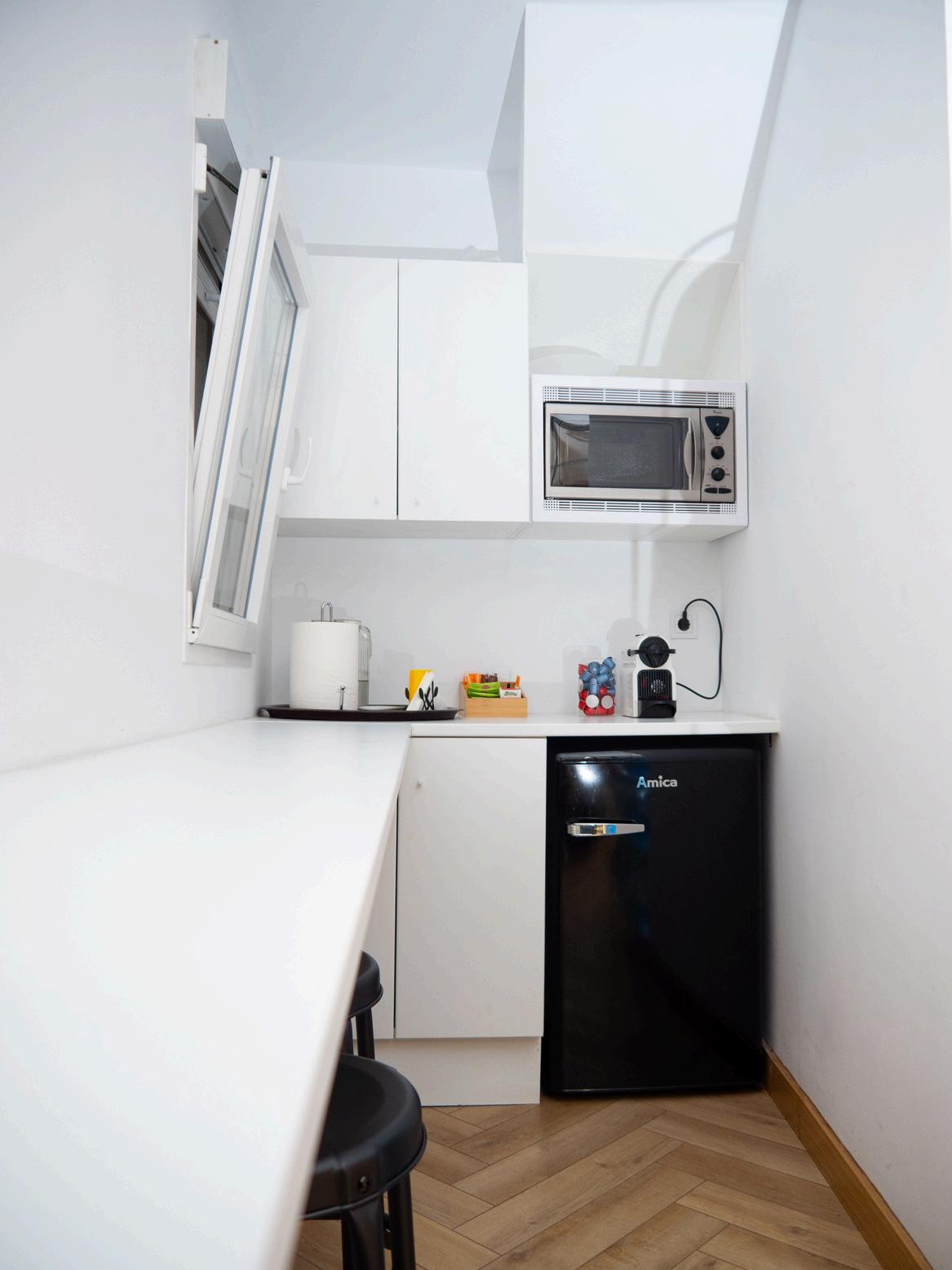 Funcionalidad y diseño: Kitchenette integrada y estudio de iluminación a medida