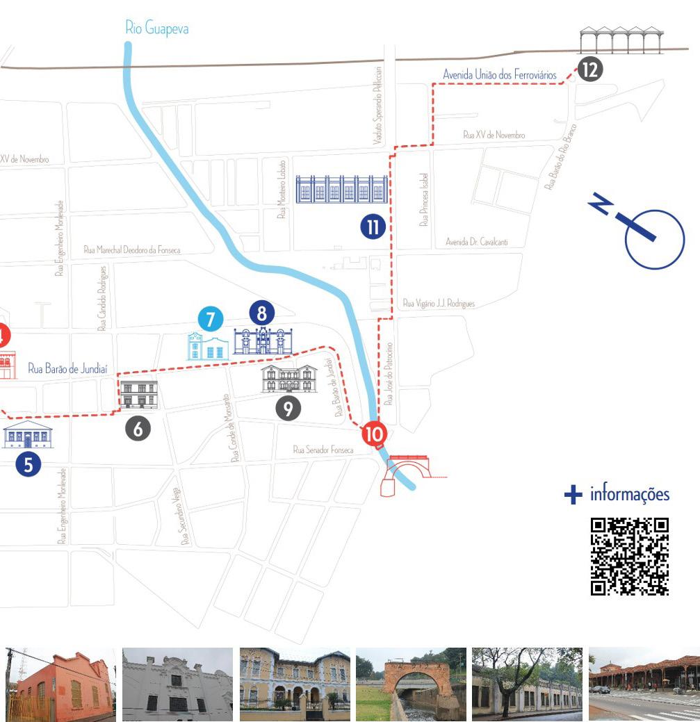 Mapa de Visitação desenvolvido para orientação do percurso e dos imóveis históricos localizados no centro de Jundiaí.