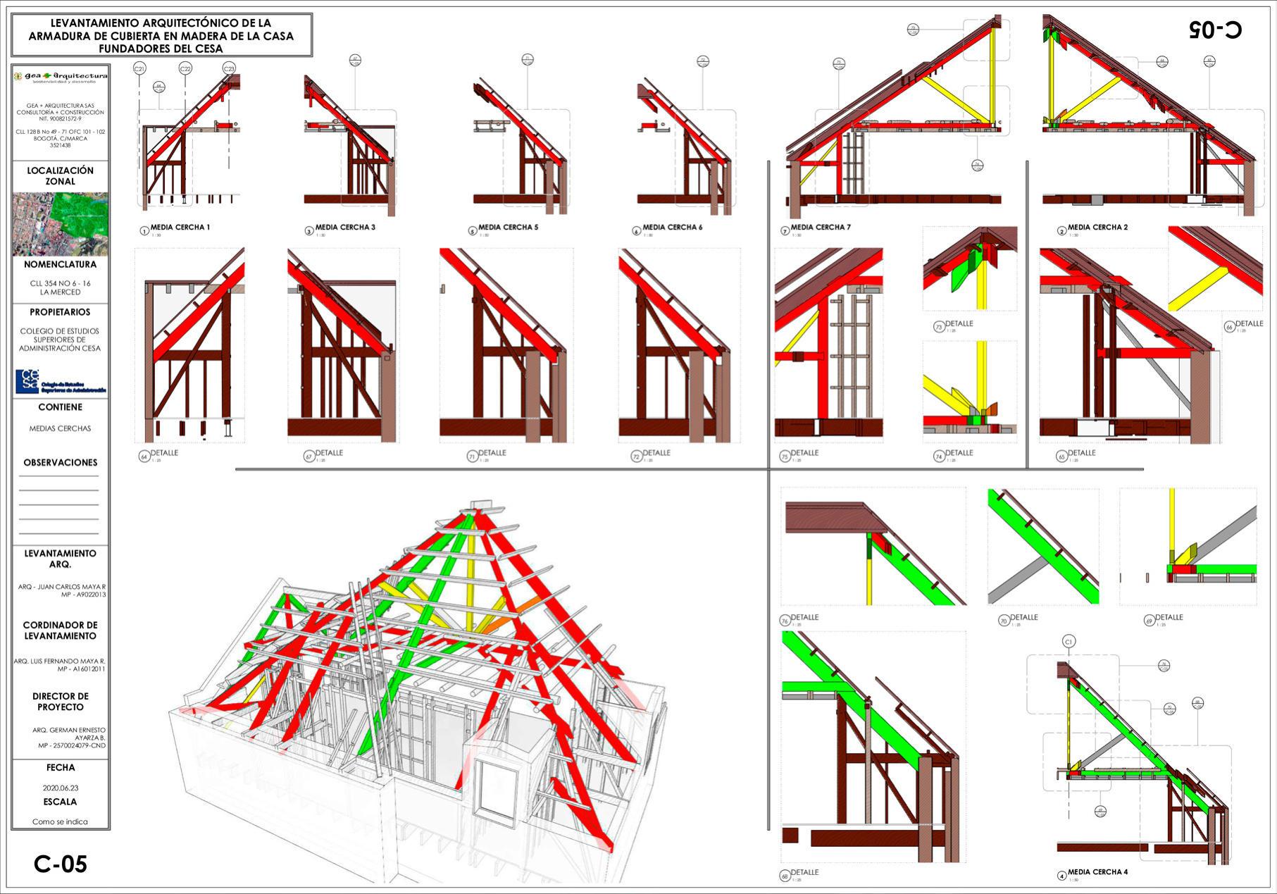 Proyecto Modalidad Cliente Área Fecha estudios DE armadura de cubierta CASA FUNDADORES EL CESA Levantamiento ARQ. - BIM arq resTAURADOR GERMAN AYARZA 180 M ² 2019