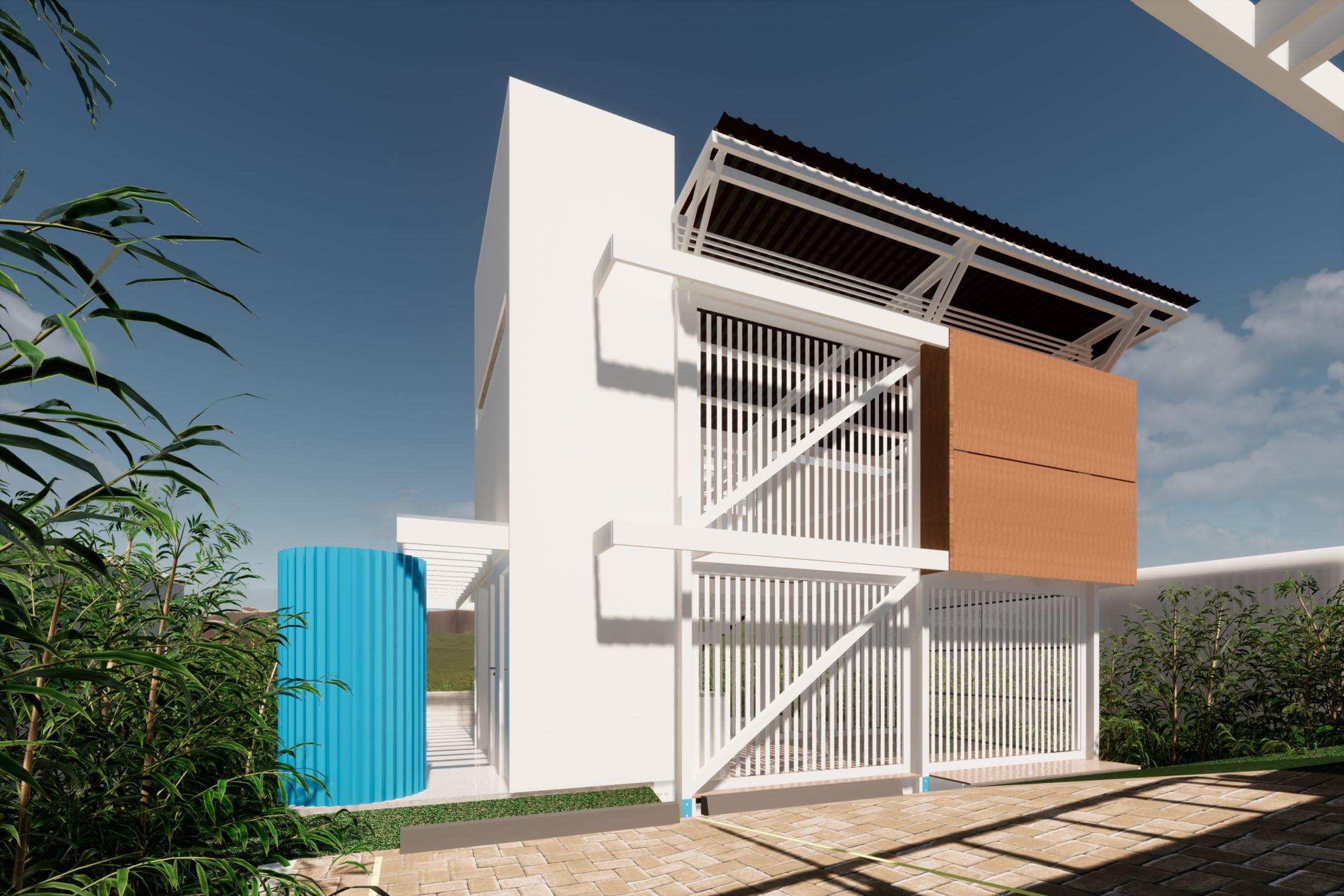Se propone una modulación de paneles verticales dilatados entre sí que permitan la entrada de luz solar mínima, con el objetivo de obtener iluminación natural en los espacios continuos a la misma donde se desarrollan los usos administrativos principales del club. El propósito principal de la fachada será entonces controlar al máximo la radiación solar en verano para evitar el sol directo en las oficinas y aprovecharla en temporada de invierno buscando la implementación de estrategias pasivas y la reducción en el consumo de sistemas activos por medio de elementos livianos y de rápido montaje y desmontaje.