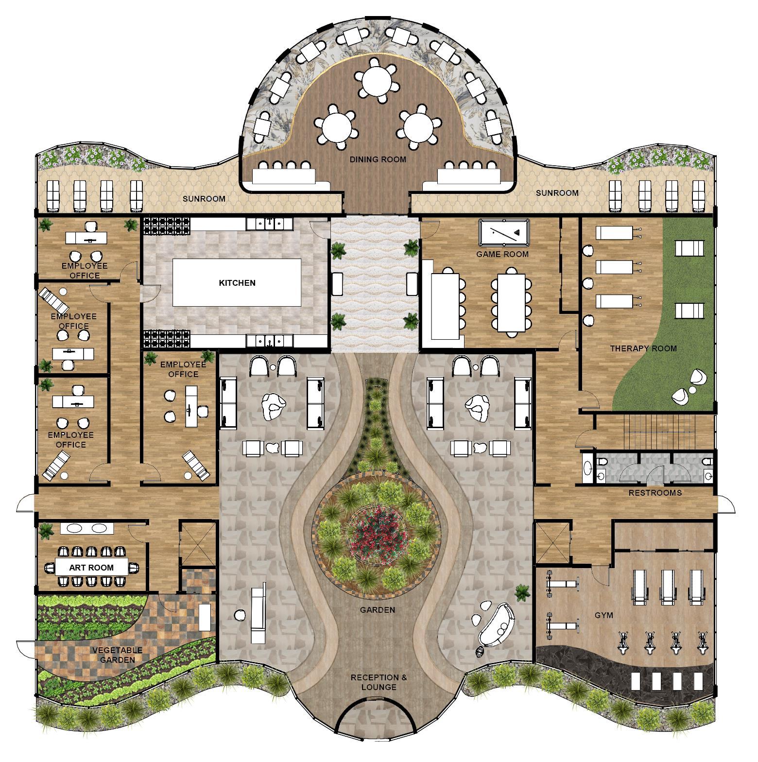 The Oasis senior living facilities were designed to create a comfortable space for the elderly to live out the rest of their lives; in a meaningful way connecting with people within their age bracket. It will be a place to live, engage, and interact with people and nature while being indoors. The residents will have the opportunity to feel like they can experience the outside world while being indoors.