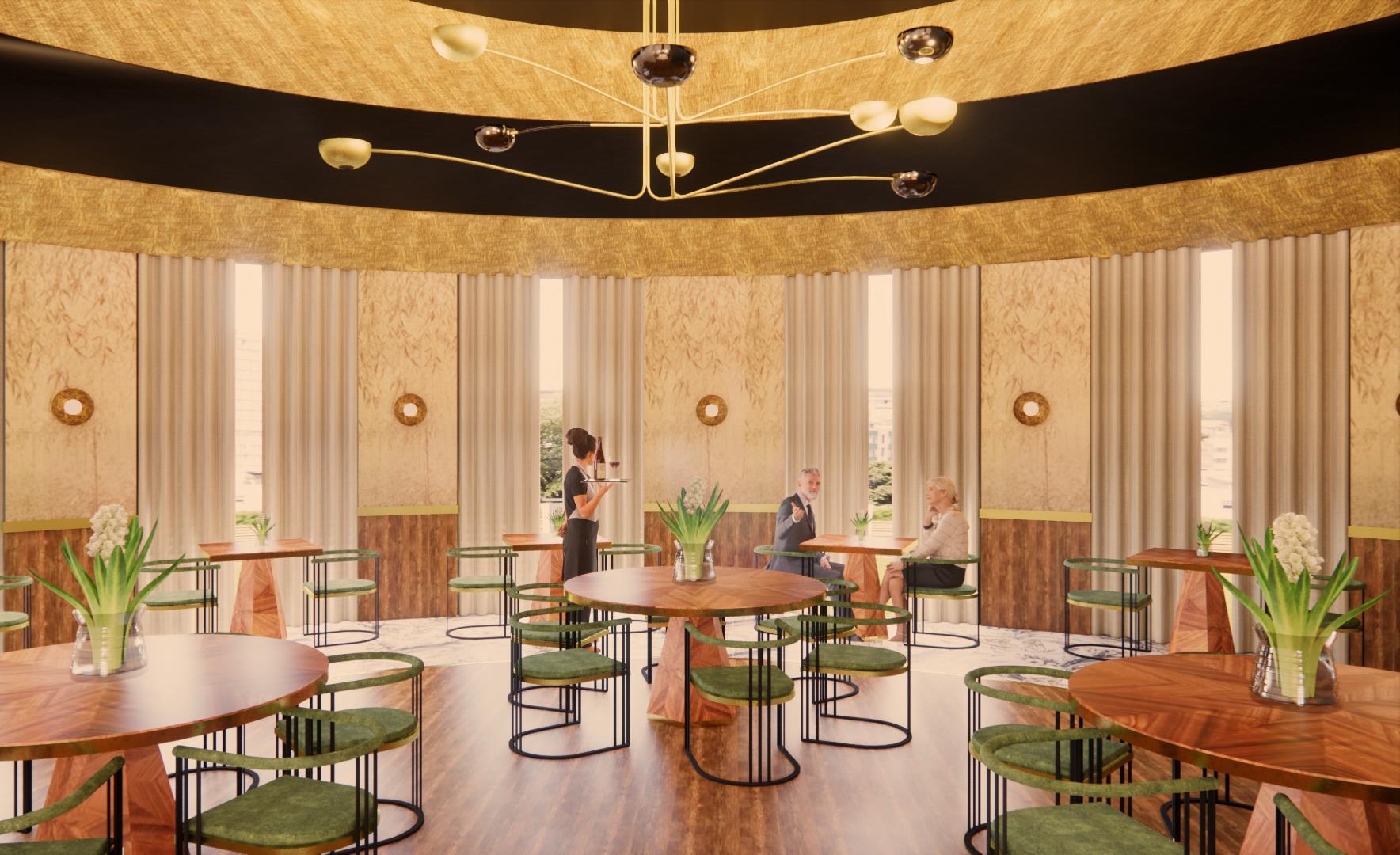 The ‘twigs’ banister represents the natural and authentic cuisine of the restaurant. The wavy architecture of the mezzanine amplifies the concept and creates a relaxed atmosphere.
