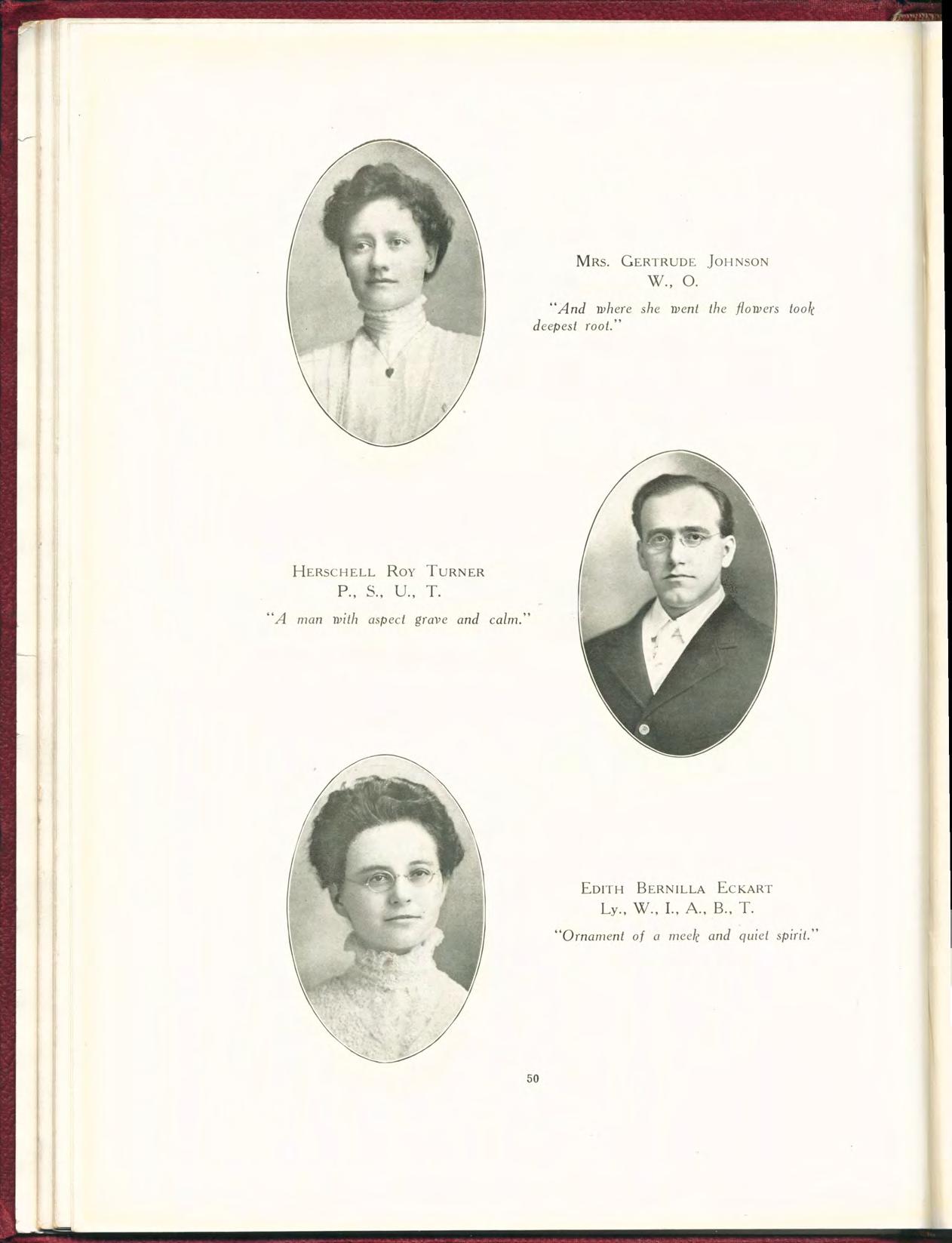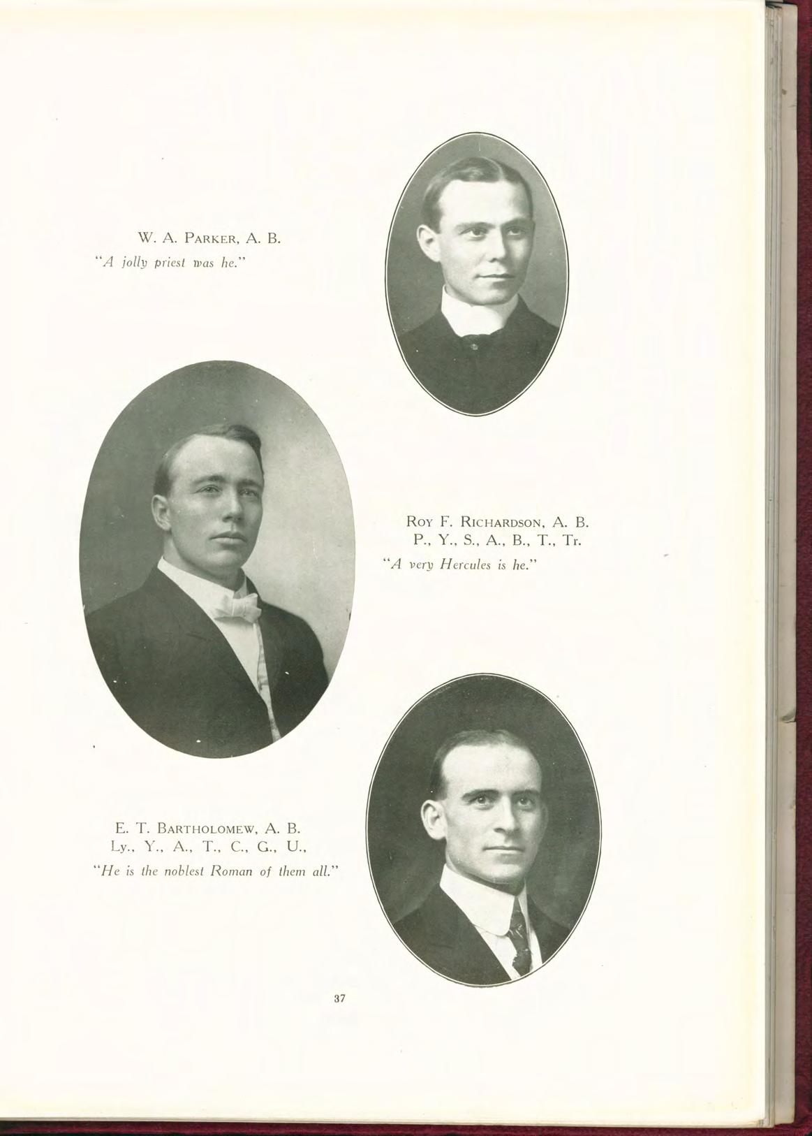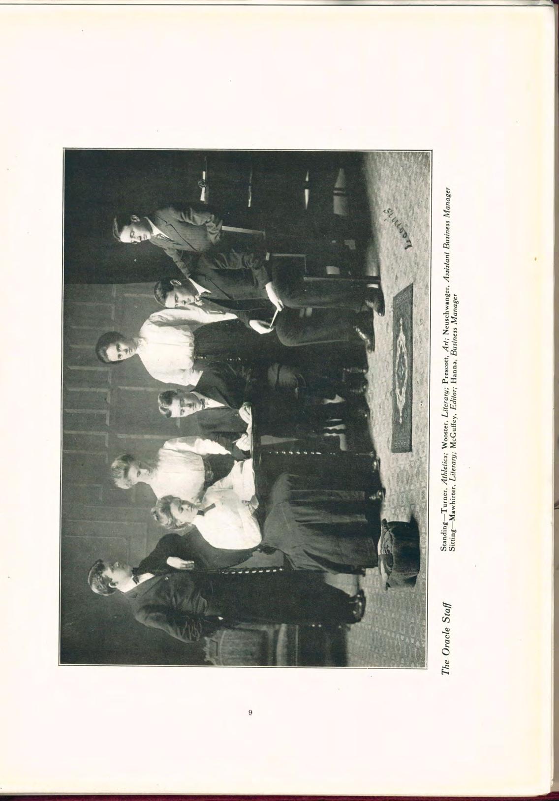 To the Juniors we beaueath the right to publish tr.e annual for 1910. Although we realize that the Oracle is much surer:,�r to anything that has ev�r been phblidhed before, and that the Juniors have no one who can pr0duce anythim1: so good again, still we would not have you unnecessarilv discouraved by that fact. The same faculty cuts will do to use al!'a;n, and you can find artists who can fix 1m your own pictures so that they will net be worse-looking than the average run 0f ordinary pictures. Then, also, you will have a splendid model to copy from. and by changing a few words and names and alterin<i: th� relative pcsitirn 0f some of the matter. vou probablv could utilize a szreat de;il of tJ-.;. matter found in tte Oracle with:::ut those wh, will be Juniors in 1910 being any the wiser.