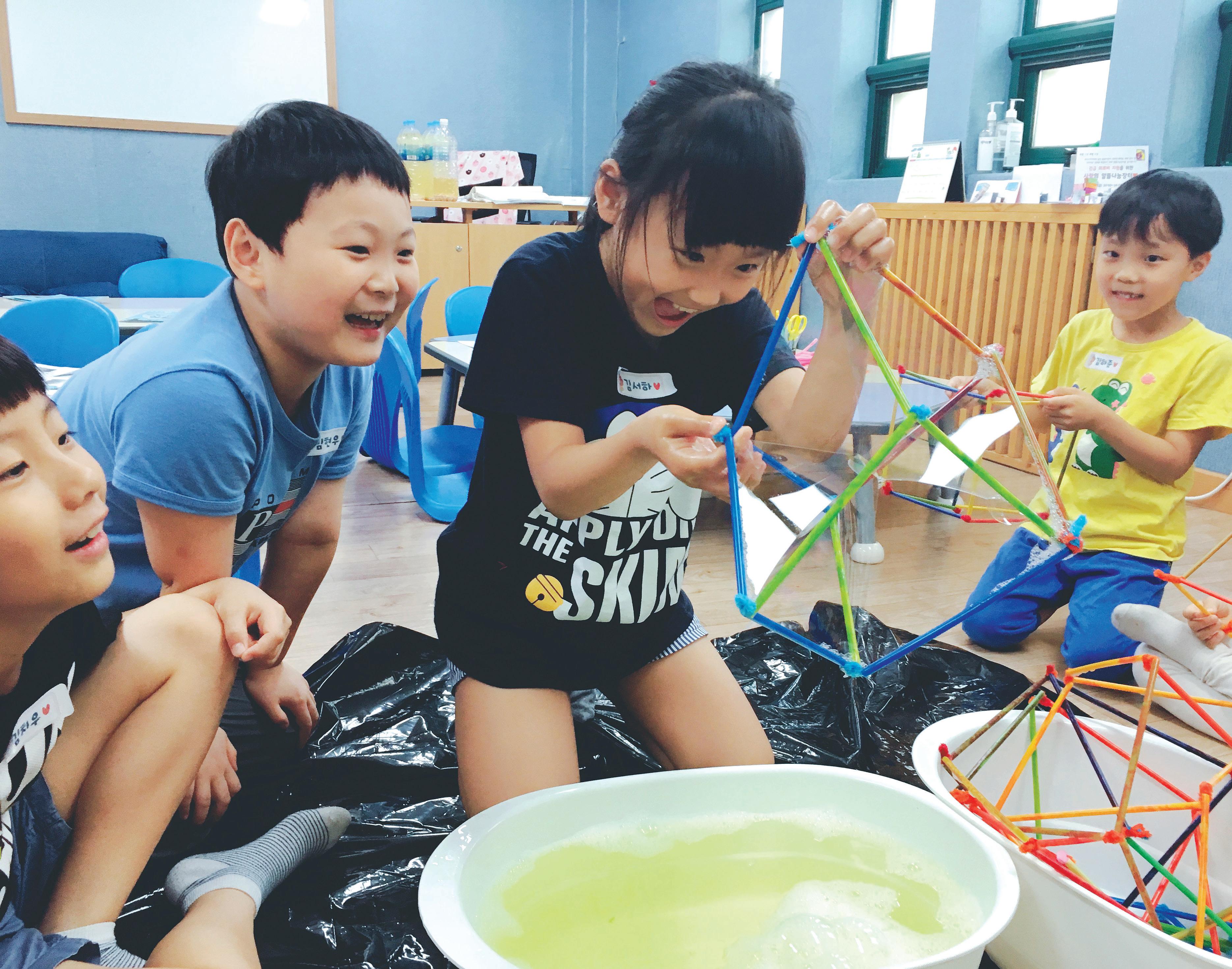 ▲ 과학실험수업에 참여한 서대문방과후교실 아동들