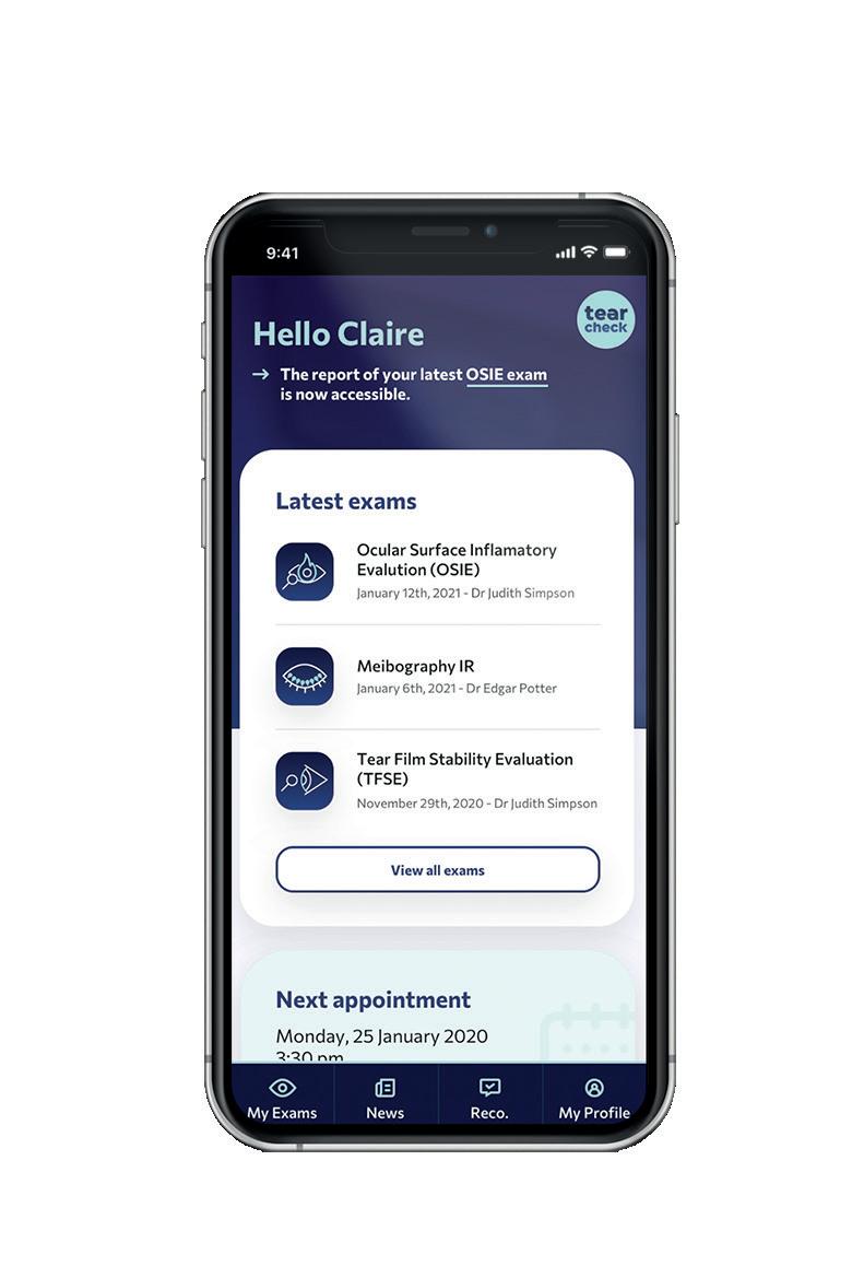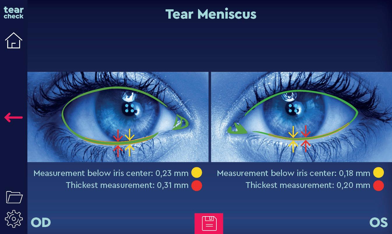 tearcheck® comes with a patient management system inside: every exam can be stored and shown to the patient at any time to follow up the progress or changes in patients‘ eyes.