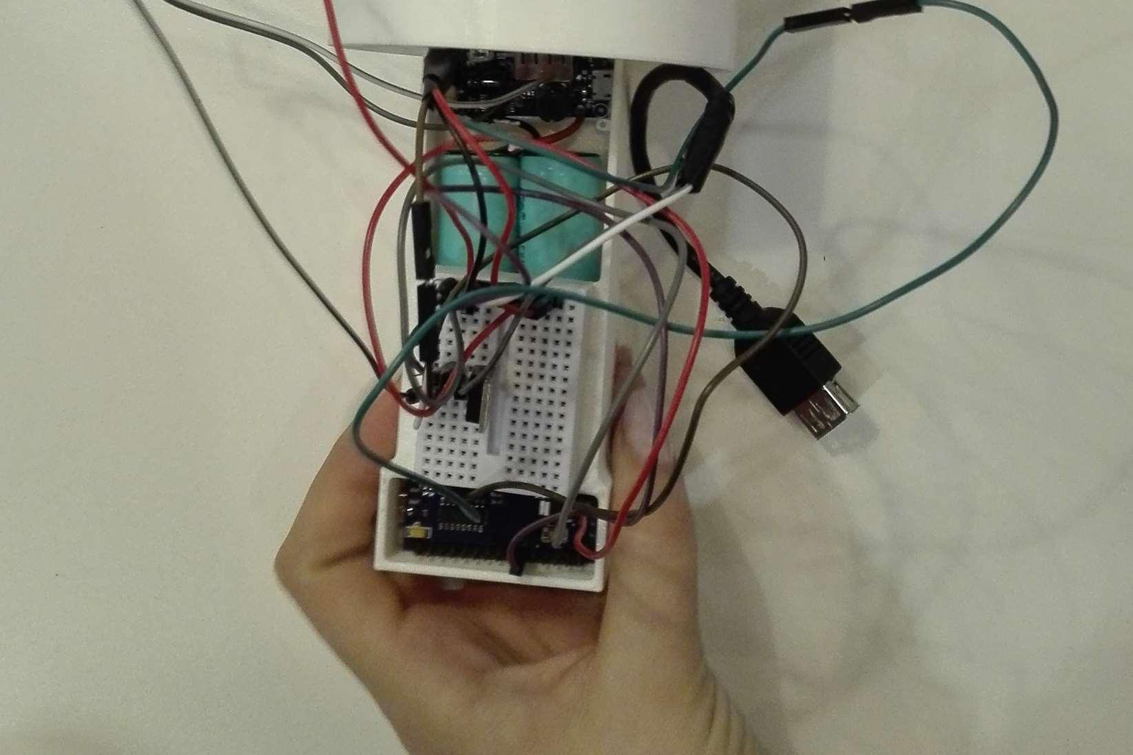 Alámpahordozható,energiaforrásaabelső vázbanelhelyezettpowerbank,amelyeta burkolatbakivezetettmikroUSBcsatlakozón keresztültudunkfeltölteni.AzenergiatakarékosLED szalagUSBvezetékkelcsatlakozikaz akkumulátorhoz.AlámpavezérlésétegyArduino nanoegységsegítielő.