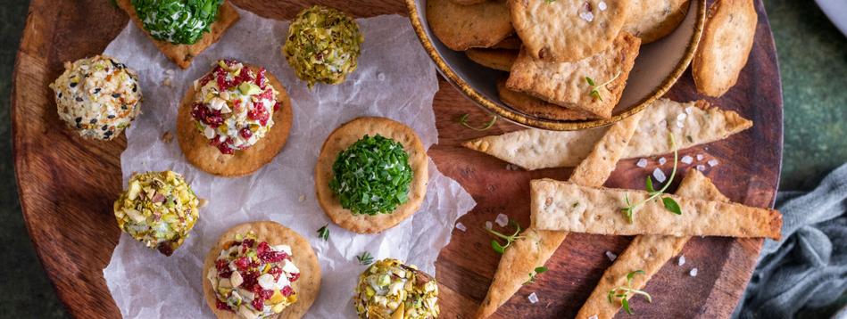 Neobyčejná chuť tymiánovo-ořechových krekrů v kombinaci se sýrovými pralinkami vás zaručeně dostane.