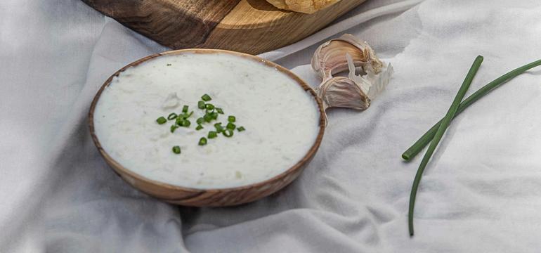 Tvarohová pomazánka s česnekem je skvělým základem, který můžete ozvláštnit cibulkou, bazalkou, kerblíkem, pažitkou, petrželkou nebo drobně nasekanou zeleninou. Podávejte ji se špalíčky mrkve, celeru, okurky či papriky nebo na pečivu, třeba na bramborovém chlebu. Pažitka podpoří trávení a povzbudí chuť k jídlu.
