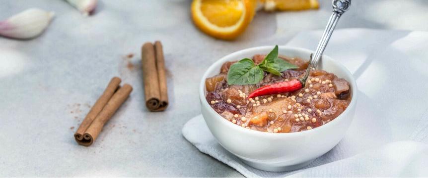 Čatní (chutney) v překladu znamená pikantní džem. Podávejte ho ke steakům, grilovanému masu, pečené rybě, tvrdým či kozím sýrům nebo z něj připravte překvapující zálivku na salát a pozdvihněte tak svoje vaření na kuchařské umění. Ostrost čatní upravte použitou chilli papričkou, zajímavého efektu dosáhnete mletým uzeným chilli práškem.