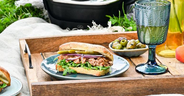 4. HOTOVÉ MASO POMOCÍ VIDLIČEK ROZTRHEJTE A DEJTE MARINOVAT DO VÝPEKU. TAKTO PŘIPRAVENÉ MASO MŮŽETE POUŽÍT DO BURGERŮ S TRHANÝM MASEM NEBO JEN TAK NA BAGETU.