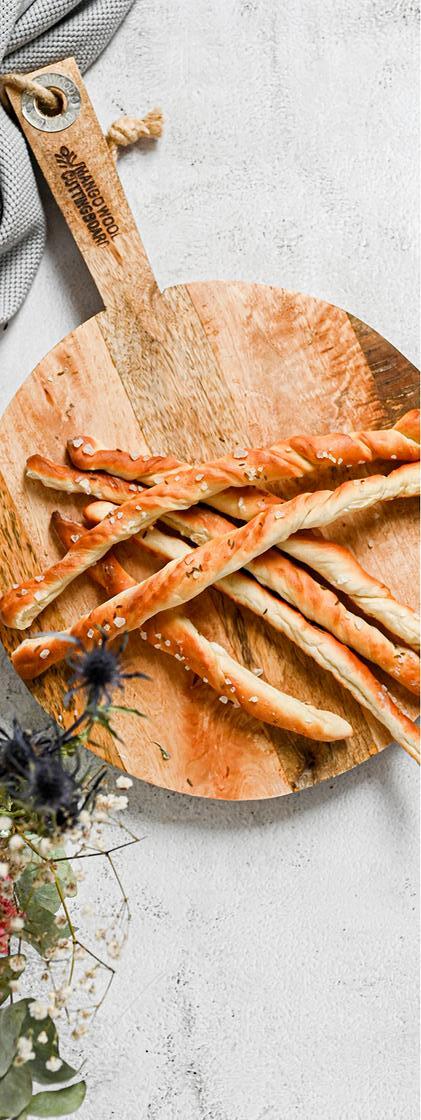 3. TĚSTO VYVÁLEJTE NA POMOUČENÉM VÁLE NA TENKÝ PLÁT. VYKRAJUJTE LIBOVOLNÉ TVARY. ROZPROSTŘETE NA PLECH VYLOŽENÝ PEČICÍM PAPÍREM A PŘETE NA 180 °C CCA 15 – 20 MINUT DOZLATOVA. JE DOBRÉ POKLÁDAT NA PLECH STEJNÉ TVARY, JELIKOŽ TYČINKY SE NAPŘÍKLAD PEČOU RYCHLEJI NEŽ KOLEČKA.