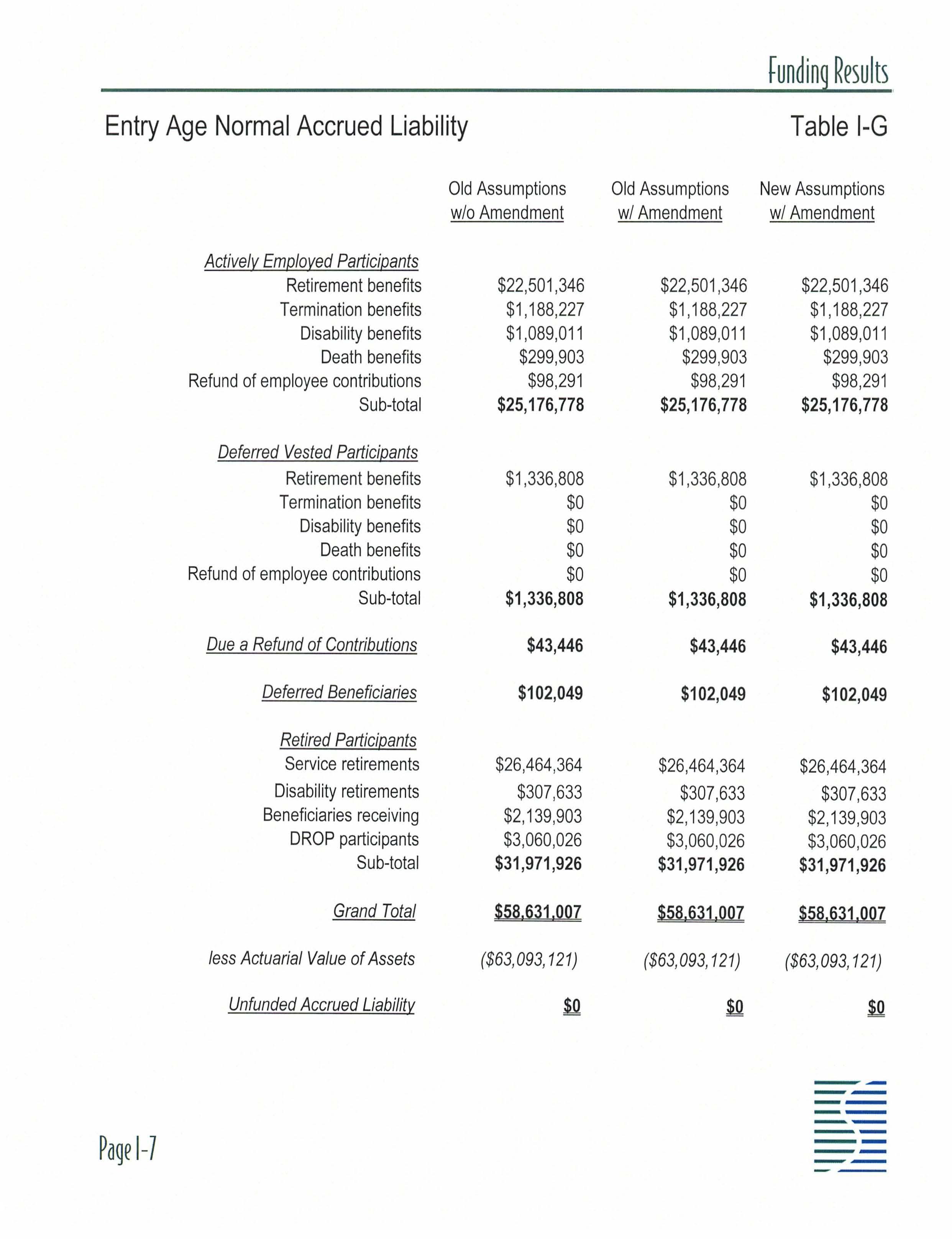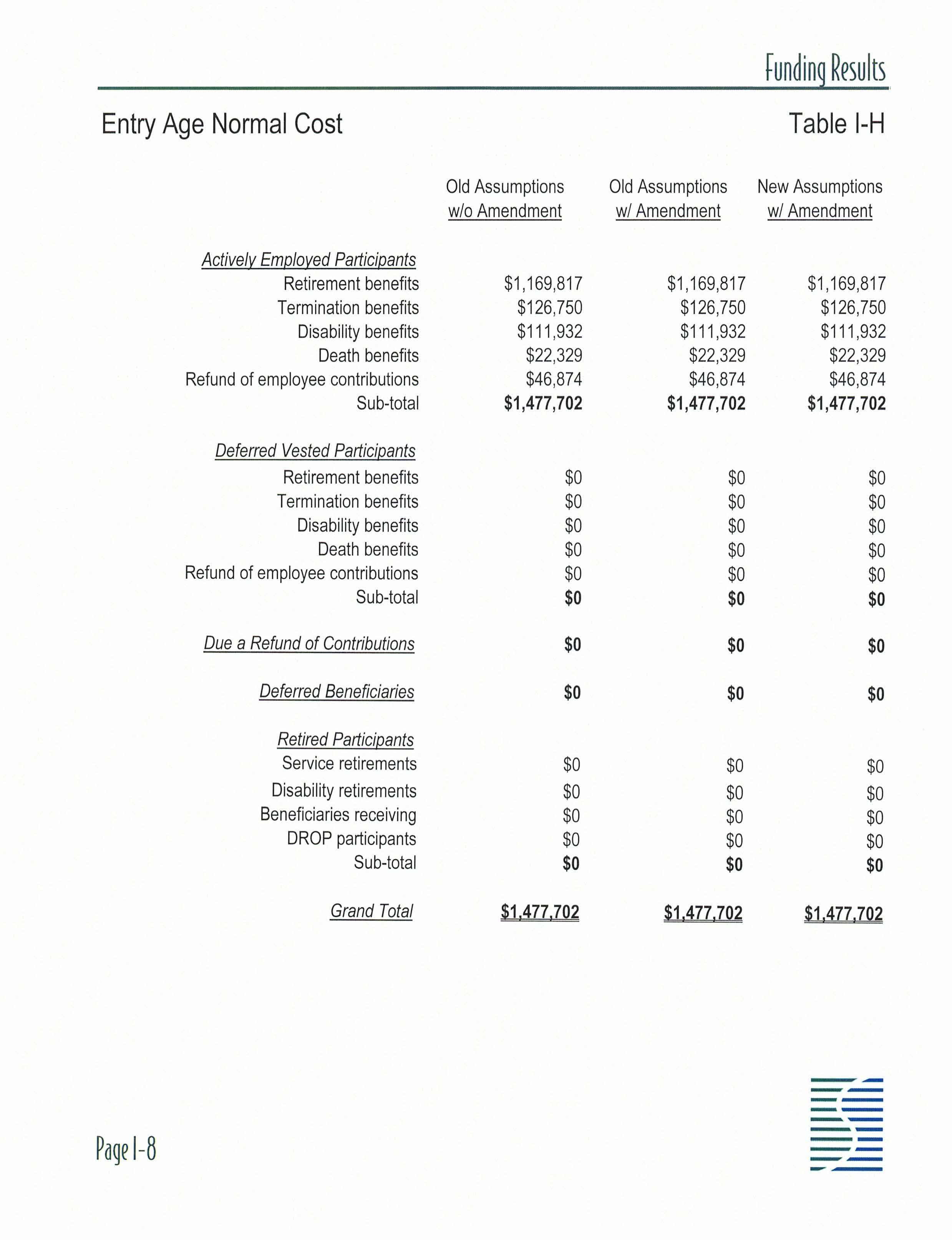 The Trustees have adopted the individual entry age normal funding method for this plan with level-dollar payments towards the unfunded accrued liability, which is expected to result in a contribution rate that decreases over time as a percentage of payroll. A brief description of the actuarial funding method is provided in Table IV-A