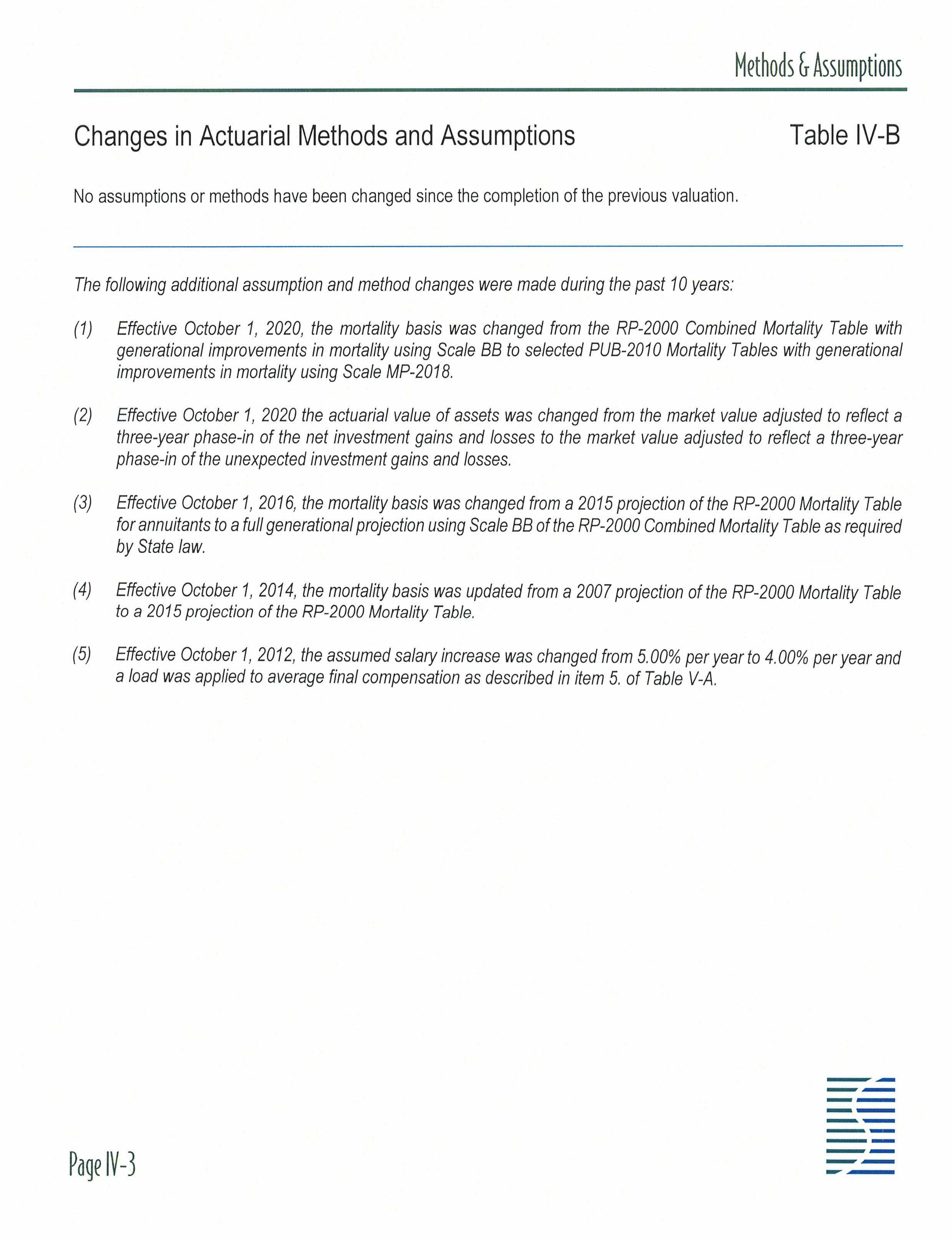 Table IV-8 Changes in Actuarial Methods and Assumptions