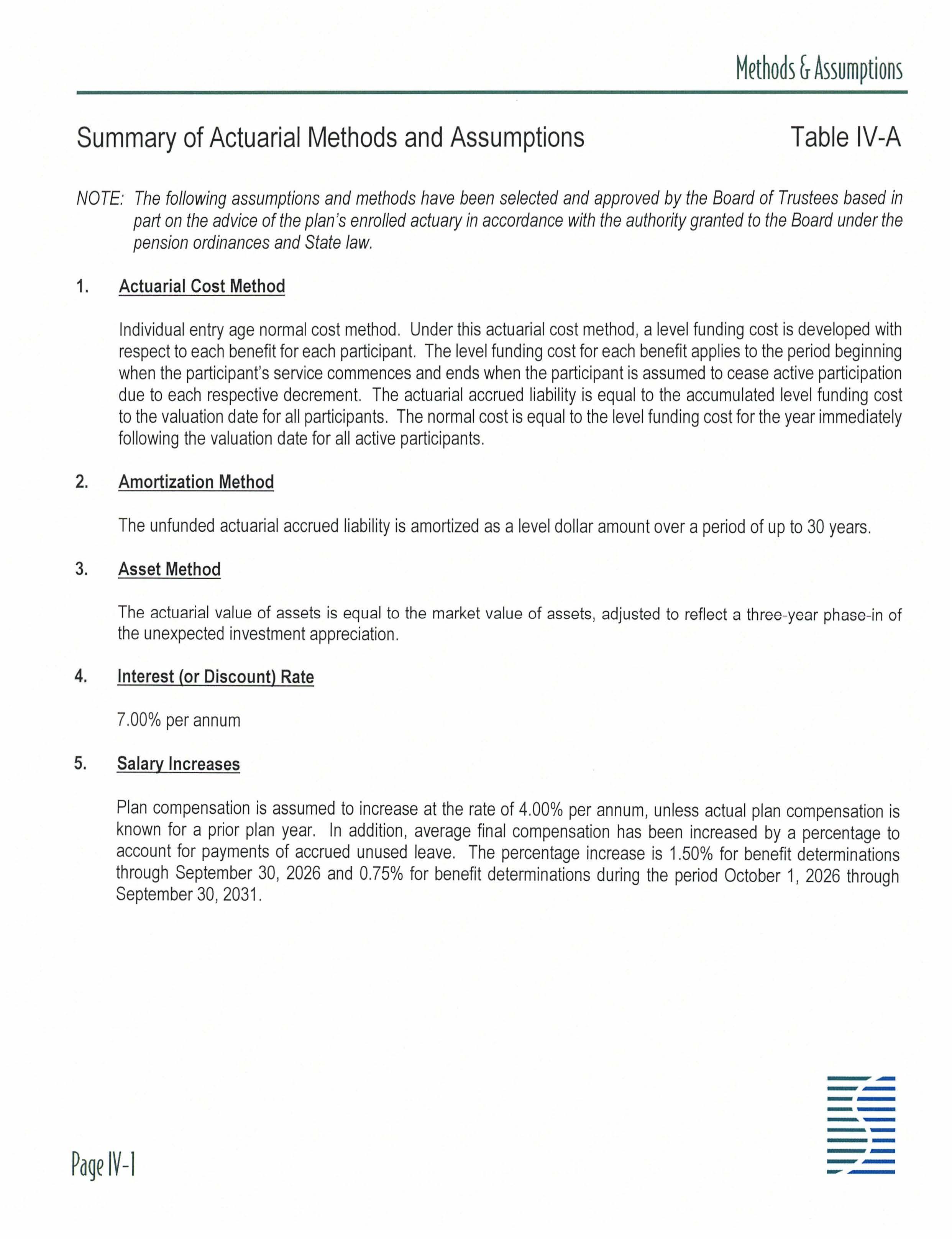 Table IV-A Summary of Actuarial Methods and Assumptions