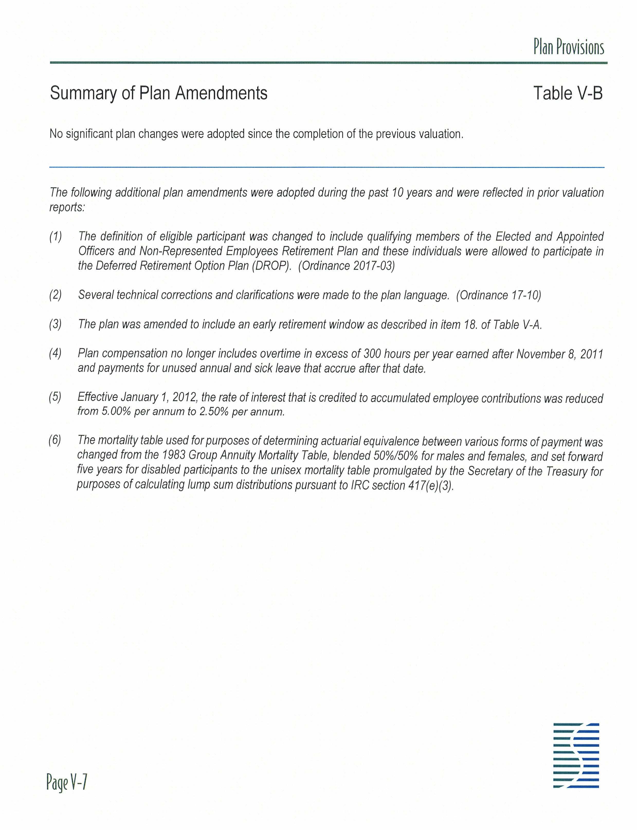 The following additional plan amendments were adopted during the past 10 years and were reflected in prior valuation reports :