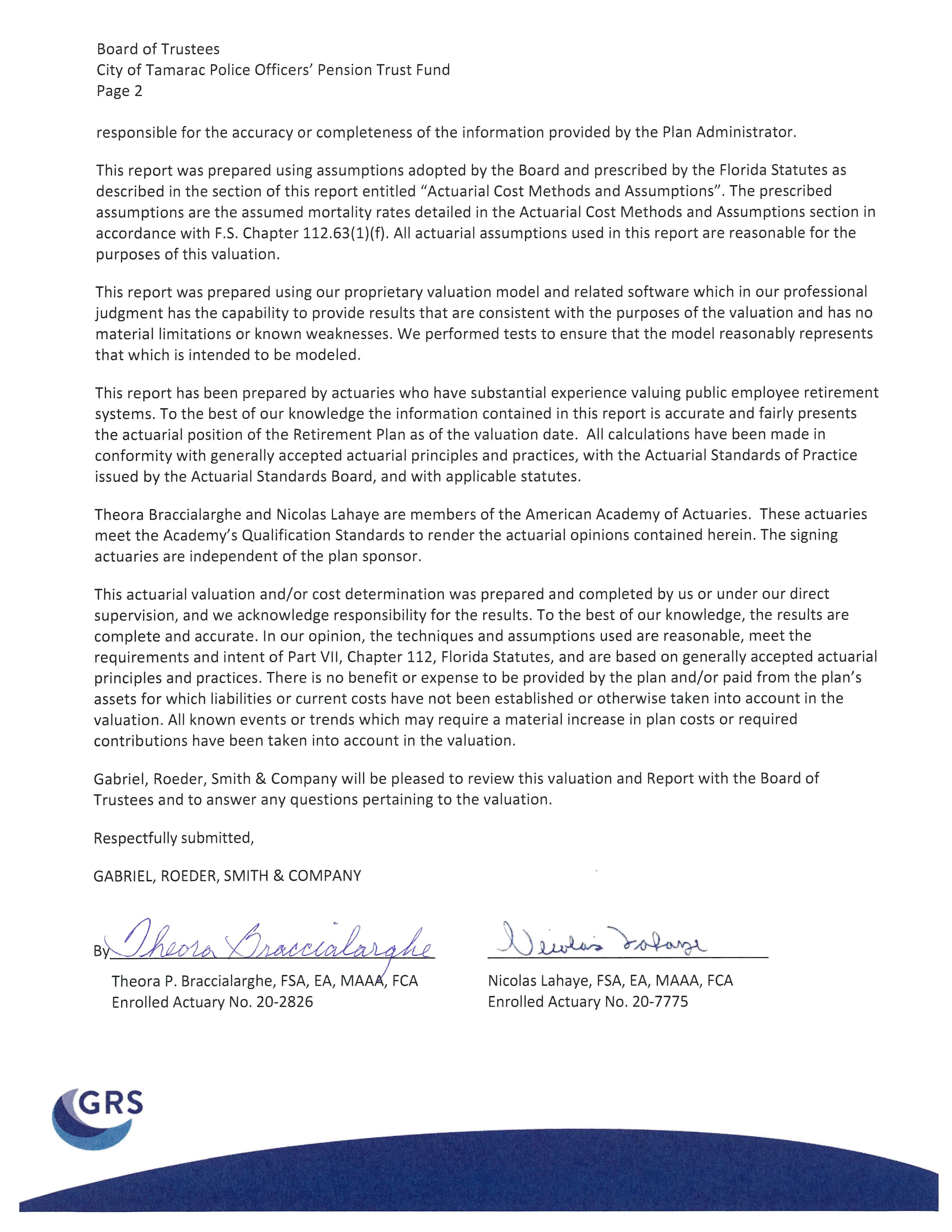 The results of the October 1, 2022 Annual Actuarial Valuation for the City of Tamarac Police Officers’ Pension Trust Fund (Plan) are presented in this report.