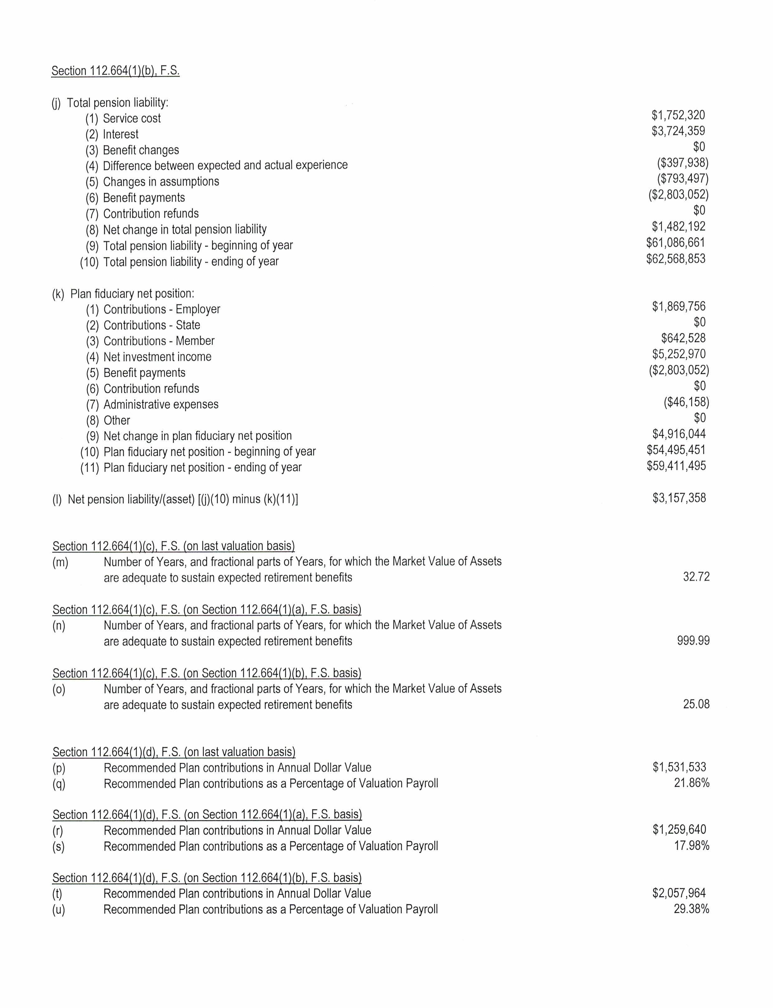 FY2021 General Employee's Pension Fund Florida Statutes Section 112.664 Required Reporting
