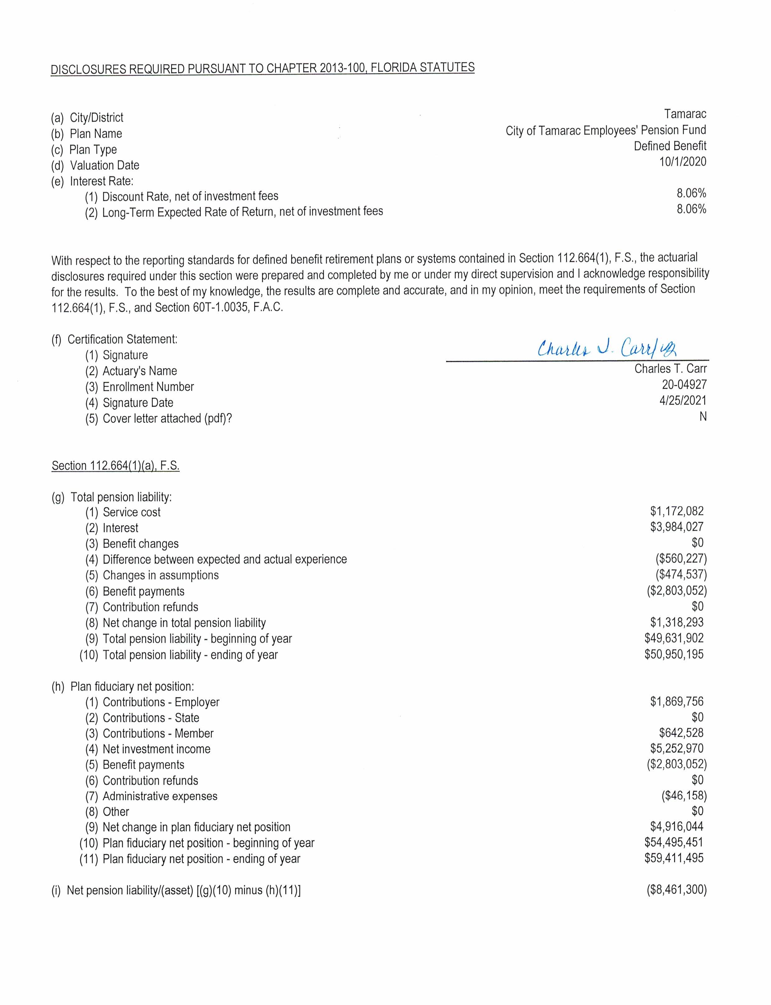 FY2021 General Employee's Pension Fund Florida Statutes Section 112.664 Required Reporting by City of Tamarac - Issuu