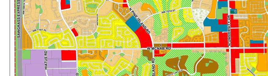 Like the Existing Zoning Map, the Future Land Use Map breaks Tamarac into very broad types of developmental areas. However, the map highlights what we want to see in the future. These are not intended to be exclusive; it is assumed that there are a variety of uses in each area, but the designation reflects the area’s predominant character.