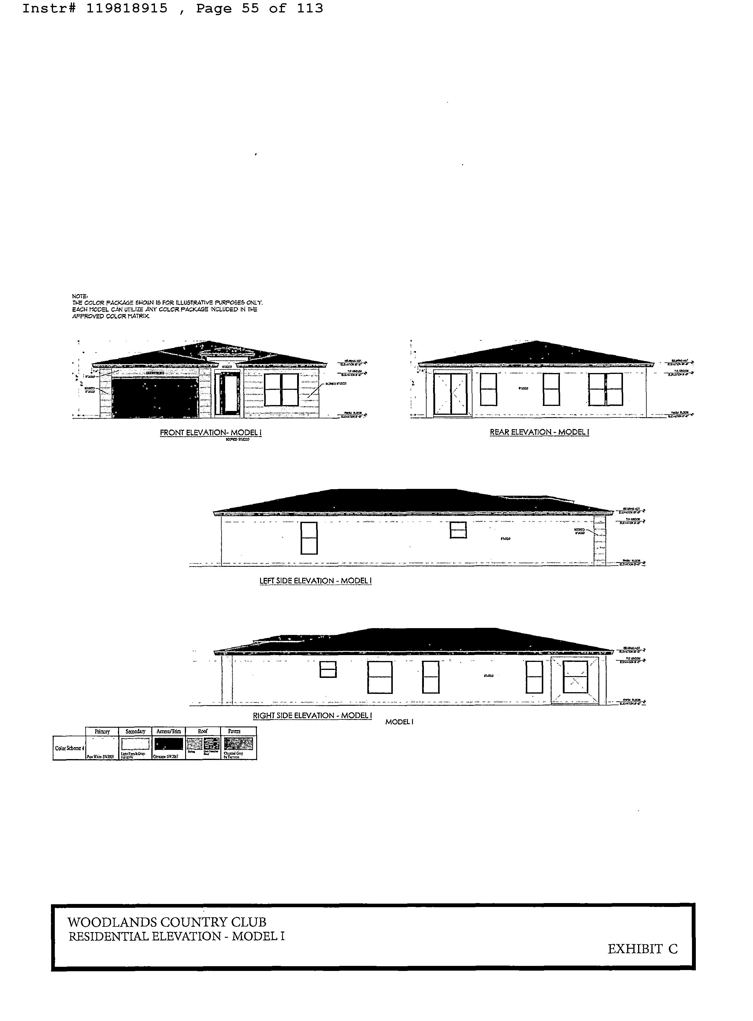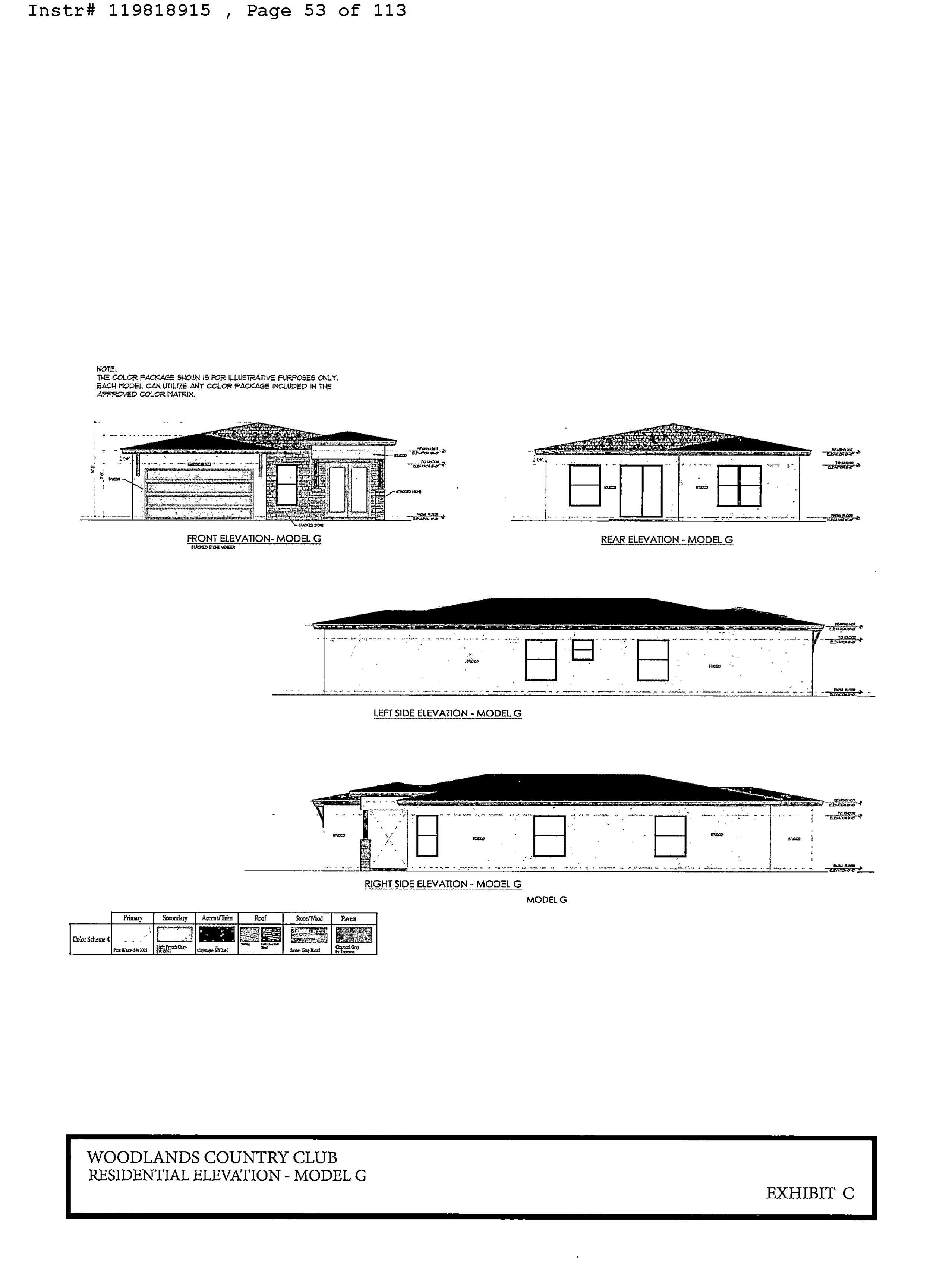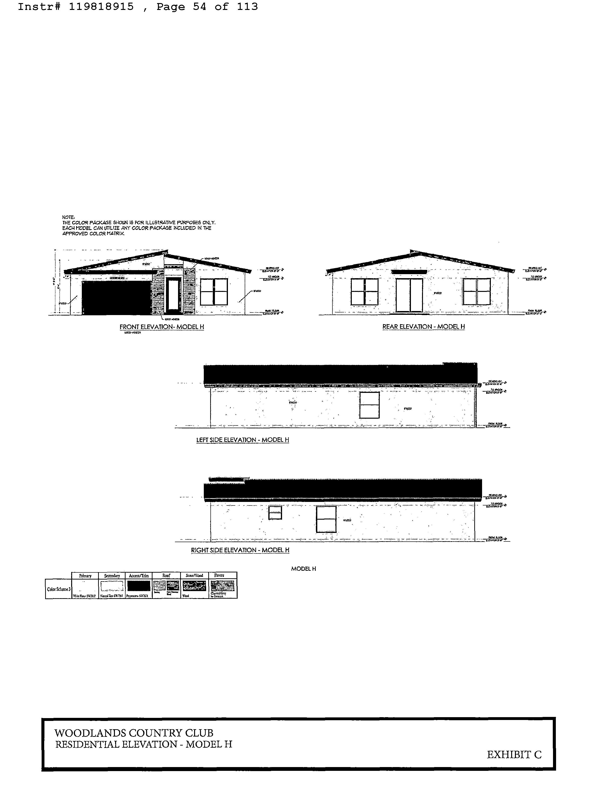 All single-family units constructed within Pods A, B, C, D, F and H shall be restricted to one-story single- family dwelling units, not to exceed thirty ( 30) feet in height. All single- family units constructed within Pod G shall be restricted to one-story and two-story single-family dwelling units, not to exceed thirty ( 30) feet in height. The residential lots shall' be a minimum width of fifty-four feet ( 54% and a minimum lot depth of one hundred feet ( 100'). The single- family dwelling units shall be developed with mid-century modern -like architecture as identified on the conceptual elevations attached hereto as Exhibit " C". Developer agrees that any proposed model homes, which may include sales centers, shall be located within Pod A, Pod C and/ or Pod G.