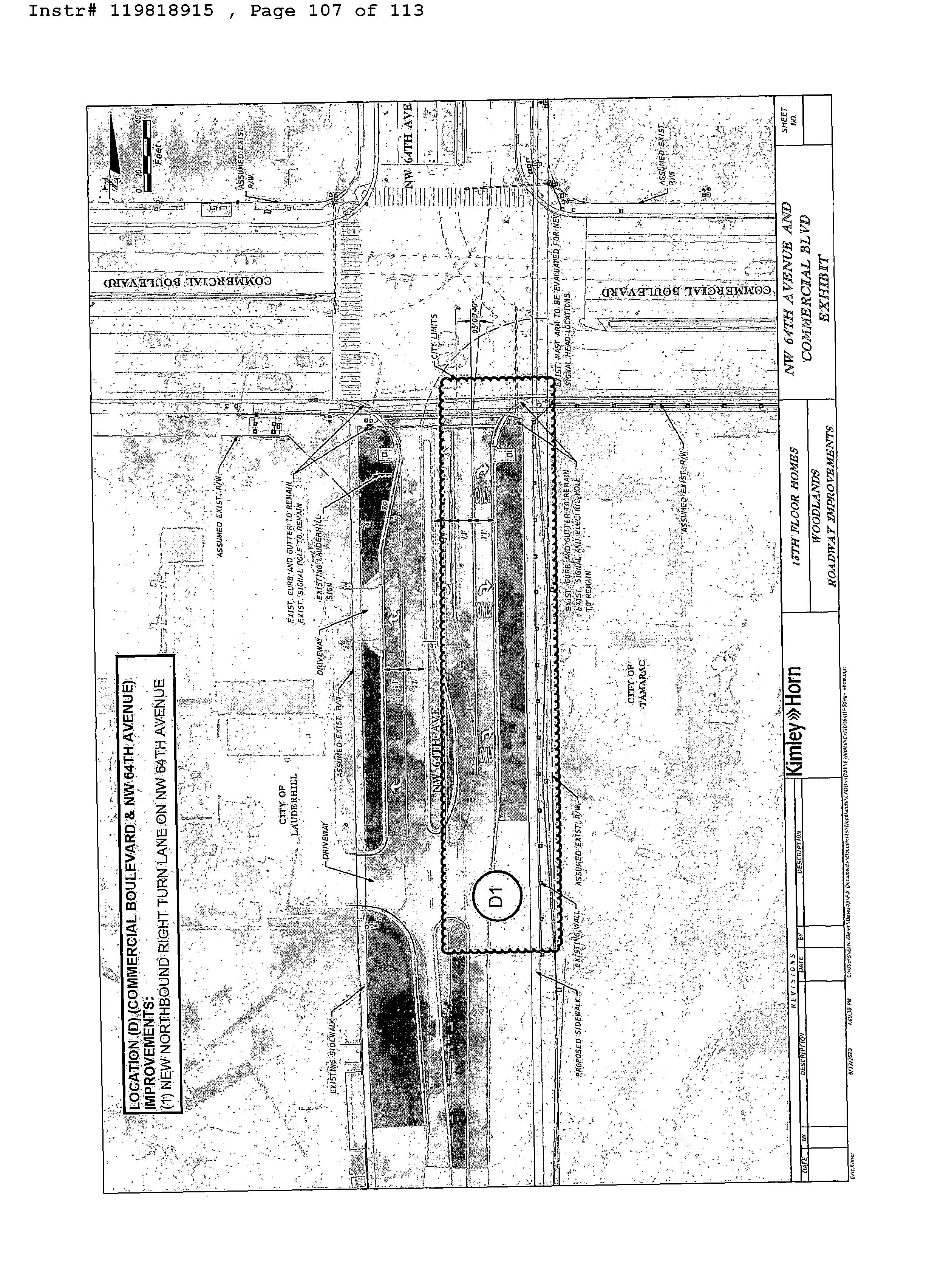Roadway, including providing and executing any documents, applications, plans, and submittals that are reasonably required to be executed by the City in connection with the foregoing. Developer further acknowledges that the City owns the east half of the NW 64`h Avenue right- ofway adjacent to the Property, and the west half ofthe NW 64th Avenue right-of-way is owned by the City ofLauderhill. Developer shall, to the extent possible, construct the improvements to the NW 64"' Avenue right-of-way, as identified in Exhibit "N", including turn -lanes, curbing, median modification, landscaping and other related improvements, and will obtain all required pennits for the completion of such improvements.