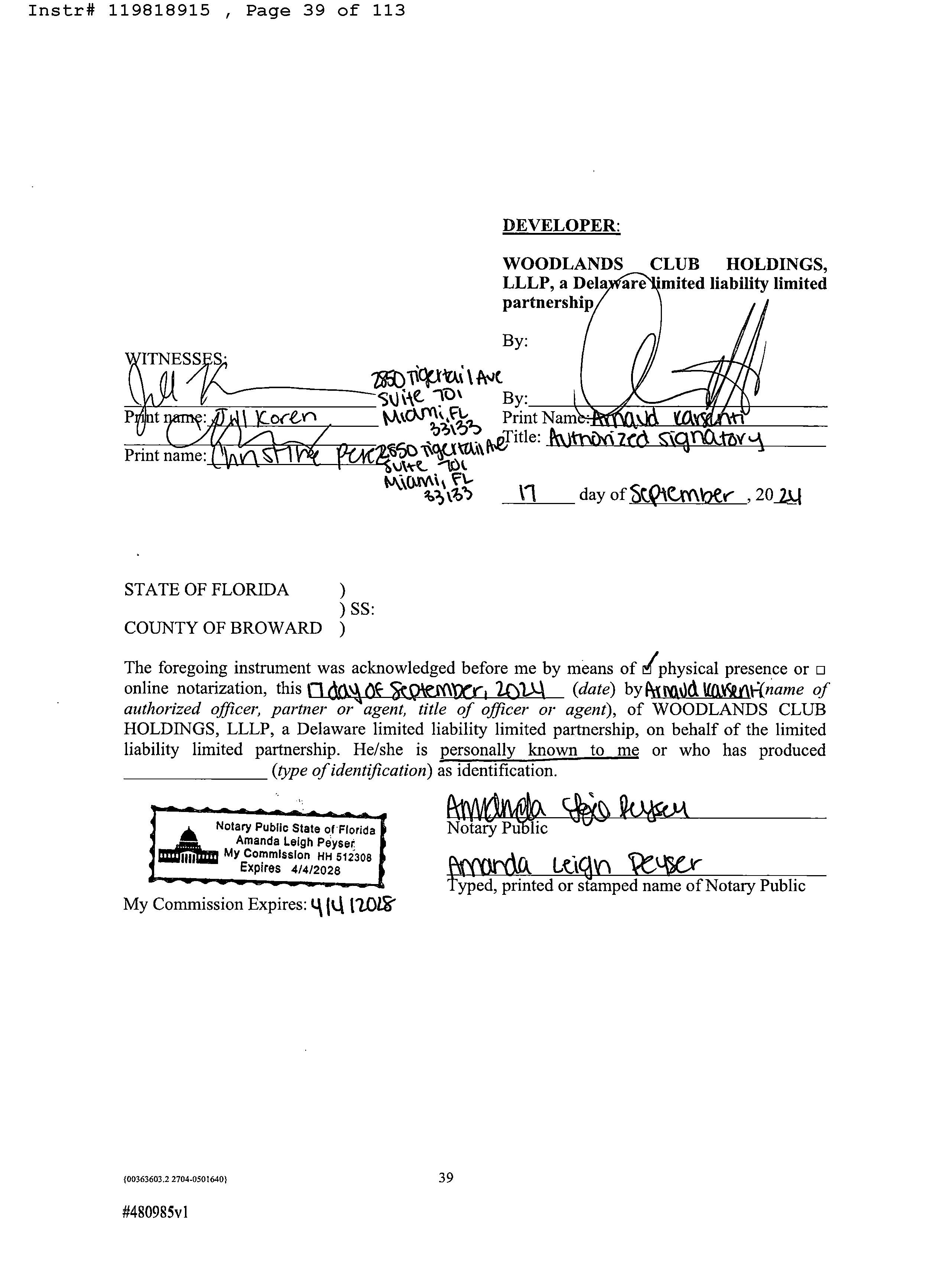 THIS DEVELOPMENT AGREEMENT (" Agreement") is made and entered into this DS day of 20aq, by and between WOODLANDS CLUB HOLDINGS, LLLP, a Delaware limited liability limited partnership with an address of 614 S Federal Highway, Fort Lauderdale, FL 33301, its successors, grantees and assigns (" Developer"), and the CITY OF TAMARAC, a municipal corporation ofthe State of Florida, with an address of 7525 N.W. 88th Avenue, Tamarac, Florida, 33321(" City" and collectively with " Developer" referred to herein as the " Parties").