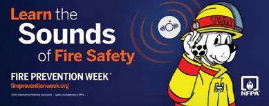 The theme of this year’s National Fire Prevention Week is “Learn the Sounds of Fire Safety.” The goal is to increase awareness of di erent sounds smoke and carbon monoxide alarms make during emergencies. Knowing these sounds will help keep you and your family safer.
