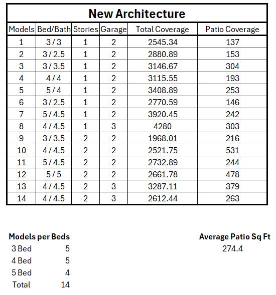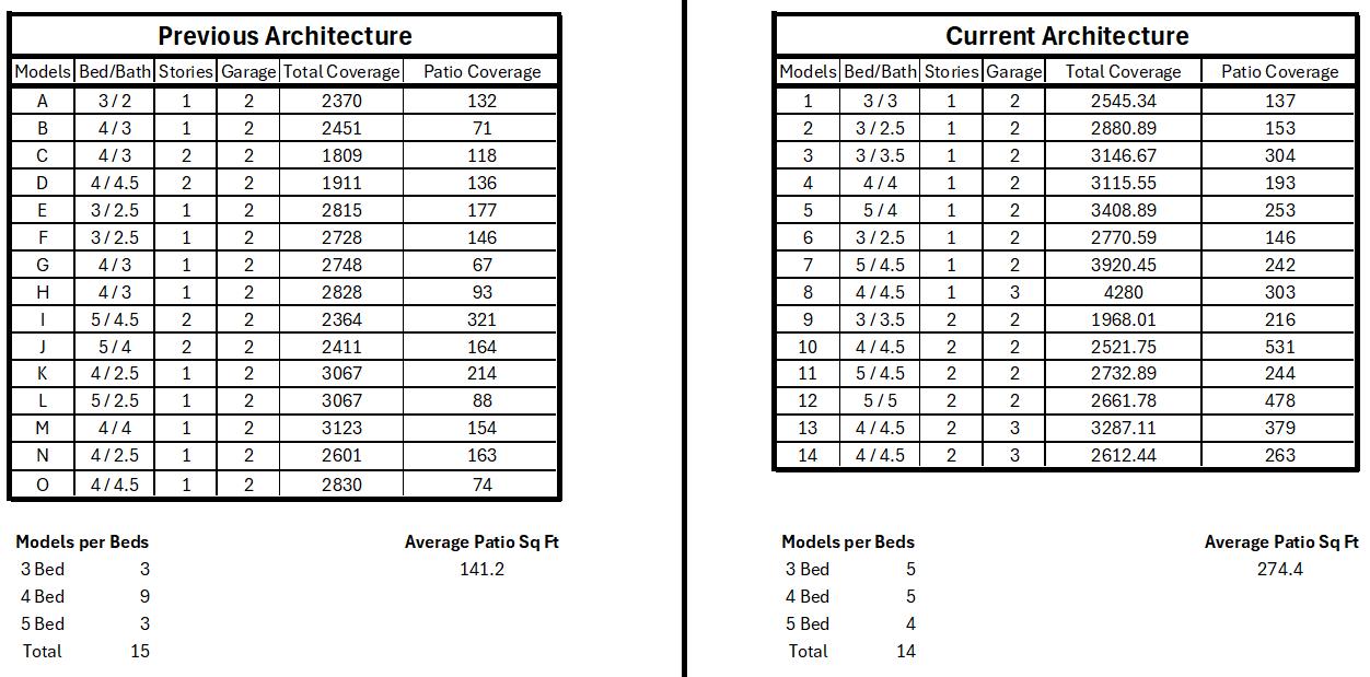 • Seeking variance to increase lot coverage by an average of 150 sq ft to allow for some models to provide covered patios