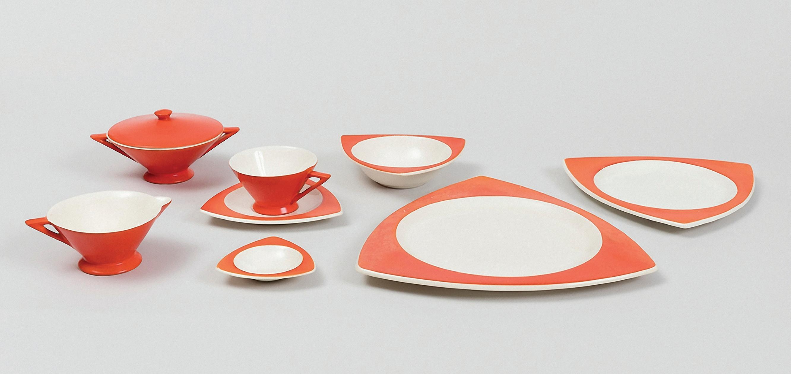 Don Schreckengost created the Tricorne shape when he was an art college student on a internship with the firm. It was often sold alongside the Streamline shape, patented in 1935 by Vincent Broomhall and Herbert A. Smith.