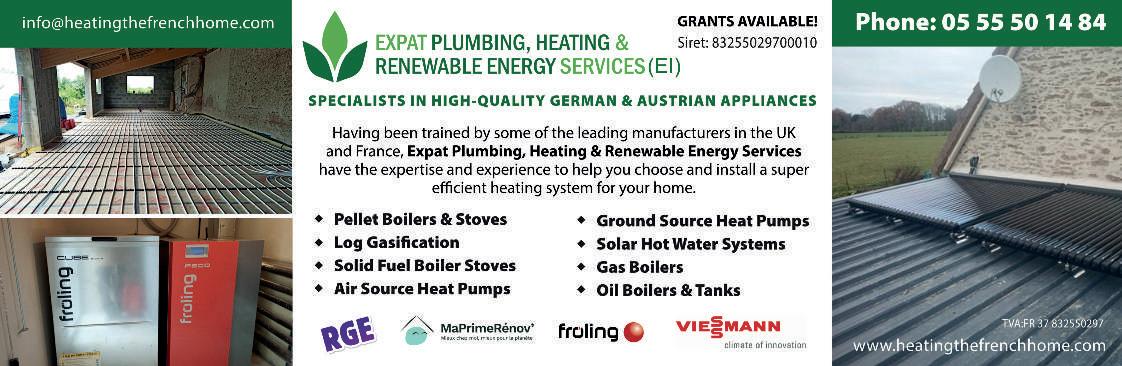 WE NOW CONSTRUCT TIMBER FRAME HOUSES FROM YOUR PLANS, DESIGNS OR IDEAS. FROM SUPPLY & ERECTION TO FULL TURN KEY SERVICE Siret:530 444 496 00018 All other aspects of building, joinery, dampproofing & timber treatment still available 05 45 91 26 61 / 06 56 79 25 58 Sean’s Painting & Decorating Services Interior & Exterior Other work carried out Sean Morrison 06 74 56 89 11 morrisonman8@gmail.com EI PLANT: Diggers 2.2 and 3 tonne / Dumpers Plant Trailer / Roller. TOOLS: Whacker Plate / Electric Breaker / Grinders / Drills Rotovator plus much more - see website www.davesdiggers.com Email: davesplanthire@gmail.com Tel. 06 75 18 09 13 PLANT & TOOL HIRE / MAN & TIPPER siret 5250162590026 Based 79120 Covering 79, 86, 16 & 87
