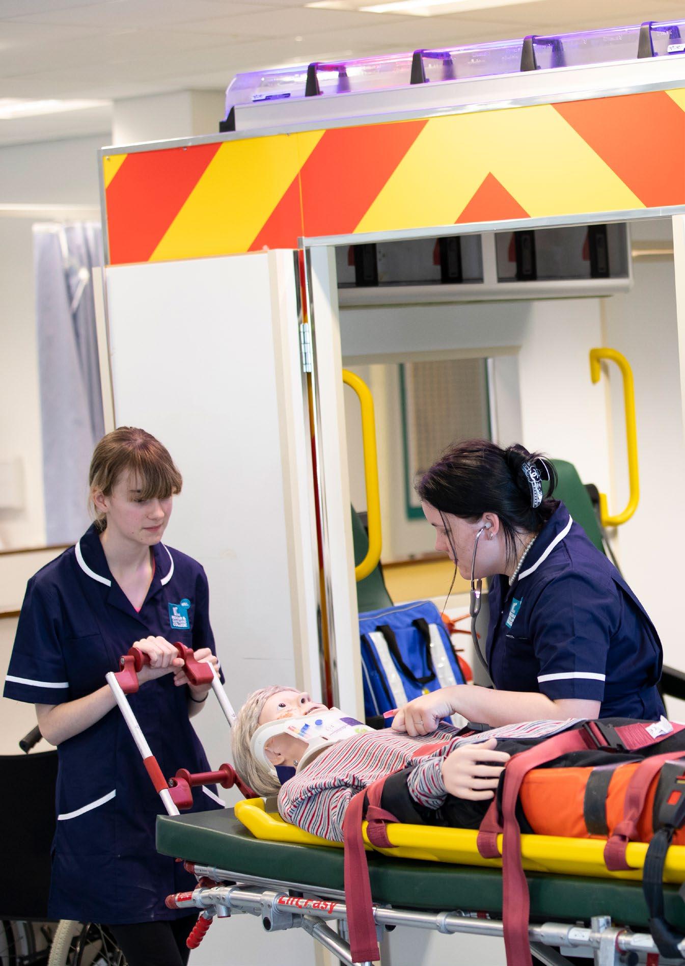 There is no better place to develop your health and social care knowledge, skills and behaviours than in our state-of-the-art Health and Social Care Training Ward, which was upgraded in 2022. It is equipped with a fourbed mock hospital ward, training ambulance, doctor’s surgery, sluice room and a domiciliary home care area.