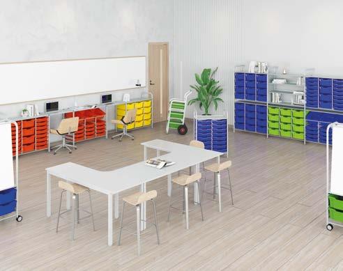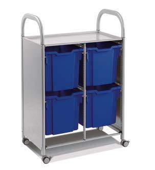 Our sleek trolleys, which boast ultra smooth rounded edges and encourage multi-site learning spaces, are available in bright Cyan Blue or classic Silver, all customisable with Gratnells iconic trays, available in a range of colours. So no matter what the colour palette, the Callero range will fit right in. The innovative lightweight frame and StopSafe™ runners make it safe and easy for students to move and access resources, without adult support, allowing pupils to be active in setting up their own or group work.