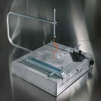 gehört die Verwendung von teuren Widerstandsdrähten, die sich nicht biegen lassen, der Vergangenheit an. Sie schneiden 3-dimensional, indem Sie den Schmelzdraht nach Ihren Vorstellungen formen und so dem Profil die gewünschte Form geben. Weiters hat Stahldraht eine sehr lange Lebensdauer und kann überall preiswert bezogen werden. Der Winkel des Schneidebügels lässt sich einfach verstellen und die Temperatur des Drahtes kann mehrfach reguliert werden.