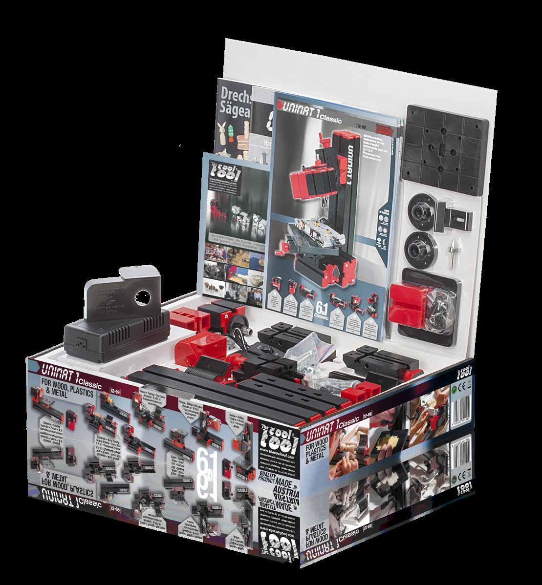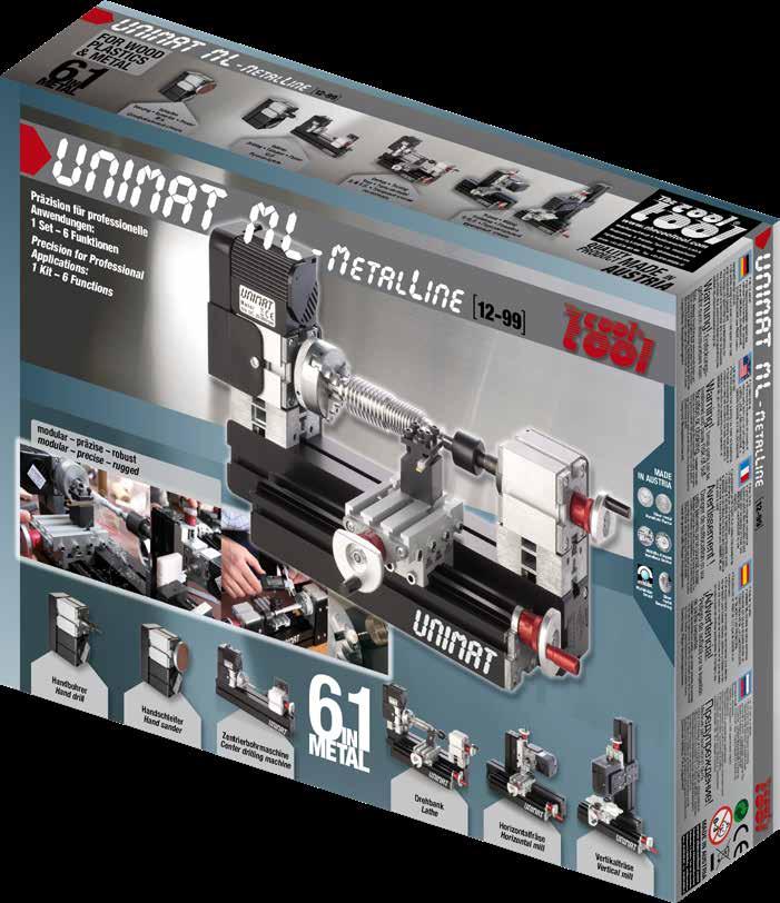 A fully operational wood-crafting workshop for the youngest „Do-ItYourselfers“ Entering the world of Unimat. With machine variants like jig saw, wood and metal lathe, mill and drilling machine
