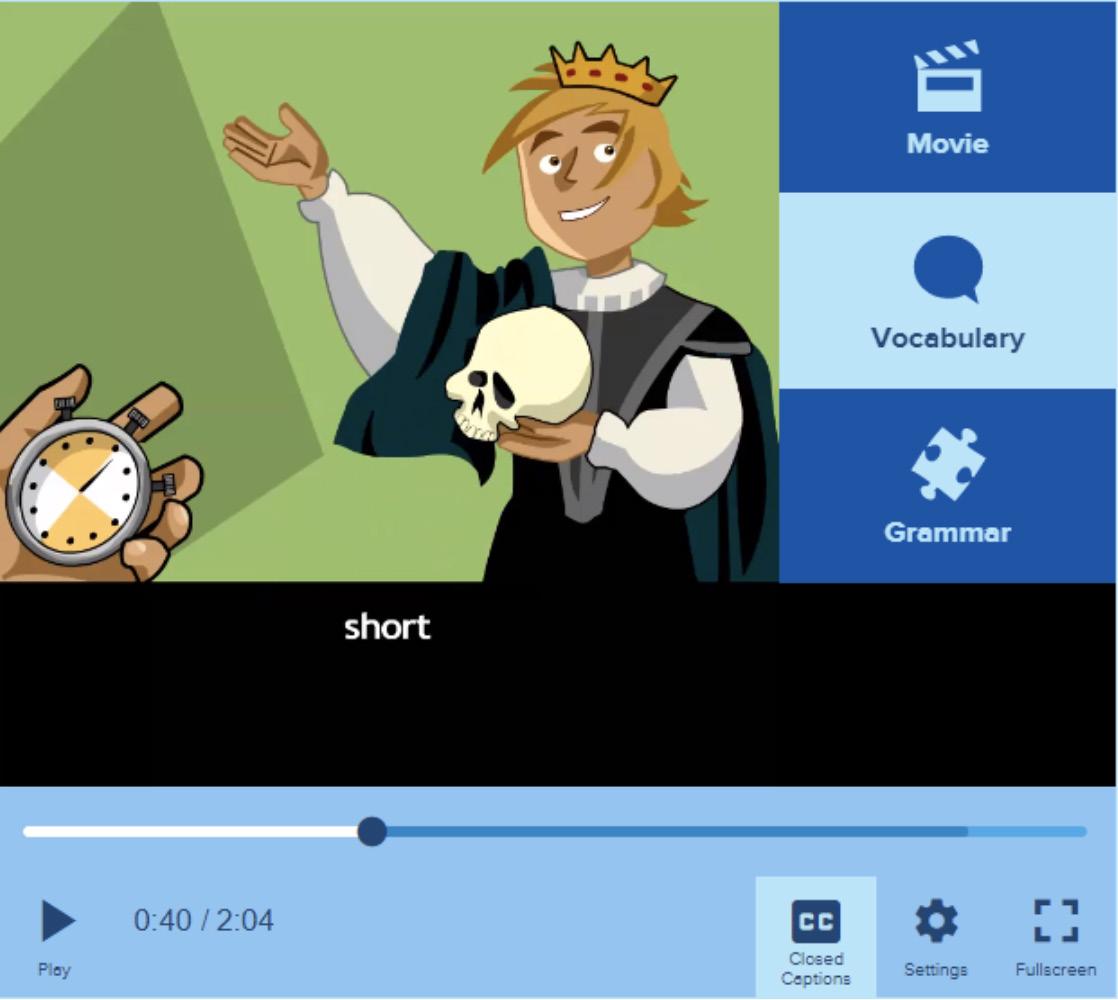 2.The targeted language domains are presented within the context of language proficiency levels. Receptive language is more prominent at the beginning level, with more tools and supports to make content comprehensible. Closed-captioning in the movies may be turned on or off. Tasks and skills required in the interactive features progress linguistically and developmentally.