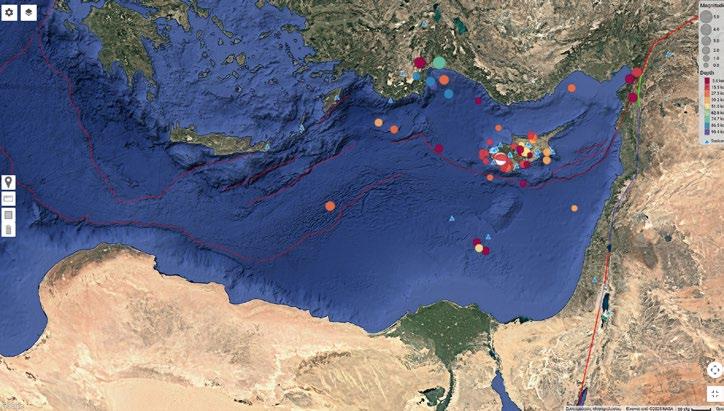 Παράλληλα, κατά τις τελευταίες 2 βδομάδες του Νοεμβρίου και τις 2 πρώτες βδομάδες του Δεκεμβρίου παρακολουθήσαμε και μια ήπια σεισμική ακολουθία (Μ≤3,6) η οποία εξελίσσεται σε περιοχή που εκτείνεται μεταξύ Πισσουρίου και Επισκοπής. Από τους δεκάδες καταγεγραμμένους σεισμούς, οι 7 μεγαλύτεροι έγιναν αισθητοί τοπικά. Στο διάστημα αυτό, είχαμε επίσης 2 ελαφρά αισθητούς μικροσεισμούς με επίκεντρα στις περιοχές Πεντακώμου και Καταλιόντα – o δεύτερος με σχετικά μεγάλο εστιακό βάθος (~55 km), έγινε αντιληπτός παγκύπρια. Αξίζει να αναφέρουμε επίσης και δύο περιφερειακούς σεισμούς οι οποίοι έγιναν ελαφρά αισθητοί στο νησί μας, στις 8 και 15 Δεκεμβρίου με επίκεντρα στον κόλπο Αττάλειας (Μ5,3) στα βορειοδυτικά της Κύπρου και στα σύνορα Τουρκίας-Συρίας (Μ3,8) στα βορειοανατολικά της Κύπρου. Ο πολίτης μπορεί να παρακολουθεί τη σεισμικότητα του χώρου μας στα δύο portals του Σεισμολογικού Κέντρου www.gsd-seismology.org.cy και www2.gsd-seismology.org.cy.