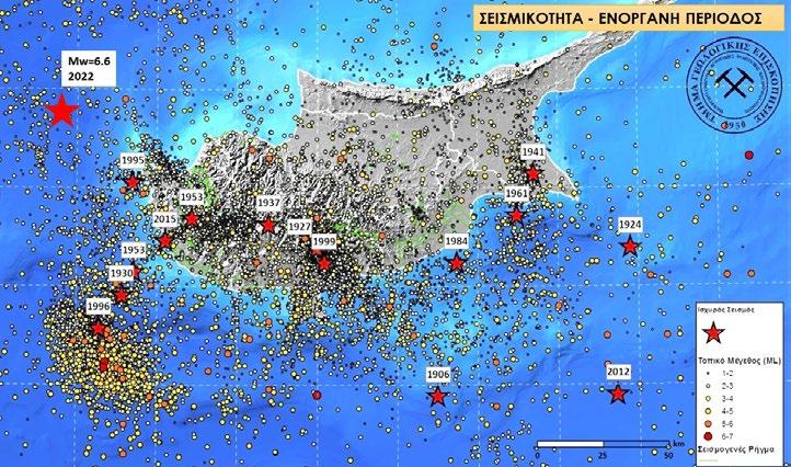 Πηγαίνοντας πίσω, κατά την περίοδο ενόργανης παρακολούθησης της σεισμικότητας της Κύπρου (130 χρόνια), ο μεγαλύτερος σε μέγεθος σεισμός σημειώθηκε το 1996 (Μ6,8) με επίκεντρο 50 km στα νοτιοδυτικά της Πάφου, ο οποίος δεν προκάλεσε εκτεταμένες ζημιές ούτε άμεση απώλεια ανθρωπίνων ζωών. Ο πιο καταστροφικός όμως σημειώθηκε το 1953 (Μ6,5) με επίκεντρο στην επαρχία Πάφου, ο οποίος προκάλεσε τον θάνατο δεκάδων συνανθρώπων μας, πολλούς τραυματισμούς, άφησε χιλιάδες ανθρώπους άστεγους, κατέστρεψε εκατοντάδες σπίτια, επηρεάζοντας χιλιάδες κτήρια συνολικά. Αξιοσημείωτοι είναι επίσης: ο σεισμός του 1995 (Μ5,9) στην Πάφο, με 2 θανάτους και πολλές καταστροφές, ο σεισμός του 1941 (Μ6,5) στην Αμμόχωστο ο οποίος κατέστρεψε ‒ευτυχώς χωρίς θύματα‒ το Παραλίμνι, ο σεισμός του 1961 (Μ=5,7) που προκάλεσε ζημιές στη Λάρνακα και, πιο πρόσφατα, ο σεισμός του 1999 (Μ5,6) στην περιοχή Γεράσας Λεμεσού ο οποίος προκάλεσε εκτεταμένες ζημιές σε κτήρια και πανικό στον κόσμο, ο σεισμός του 2015 (Μ5,6) στην Κισσόνεργα Πάφου με μειωμένες επιπτώσεις, και ο σεισμός του 2022 (Μ6,5) στα ανοικτά του Ακάμα, τον οποίο αναφέραμε πριν, ο οποίος δεν είχε σοβαρές επιπτώσεις στο νησί μας, και ευτυχώς ούτε προκάλεσε τσουνάμι.