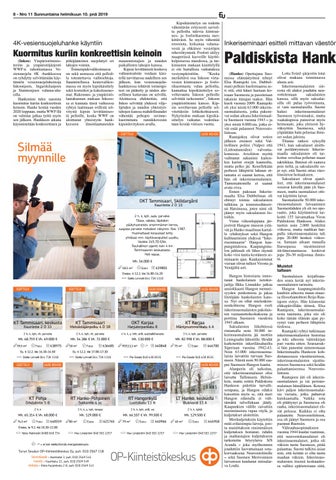 Turun Seudun OP-Kiinteistökeskus Oy, puh. 010 2567 118 TAMMISAARI - Asematie 3, puh. 010 2569 545 HANKO - Vuorikatu 21, puh. 010 2569 549 KARJAA - Elina Kurjenkatu 2 B, puh. 010 2569 541