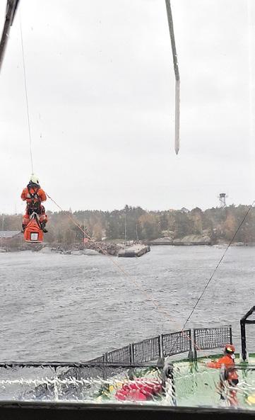 ja pelastushelikopteri vinssasi henkilöt turvaan. Turvan pumppukalustolla tyhjennettiin sammutusvesiä onnettomuusaluksesta.