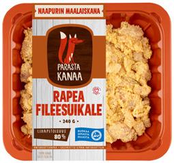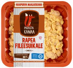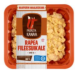 Naapurin Maalaiskana KANAN FILEESUIKALEET tai JAUHELIHA FILÉSTRIMLOR eller MALET KÖTT AV KYCKLING 240-300 g (8,33 -6,67/kg)