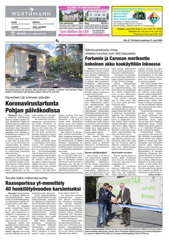 Karjaa: Lepinpellonkatu 5, puh. 020 741 5490 Palvelemme: ma–pe 8 –18, la 9–15 Yritysmyynti ma – pe 6.30 – 18 Nro 47 Torstaina syyskuun 3. pnä 2020